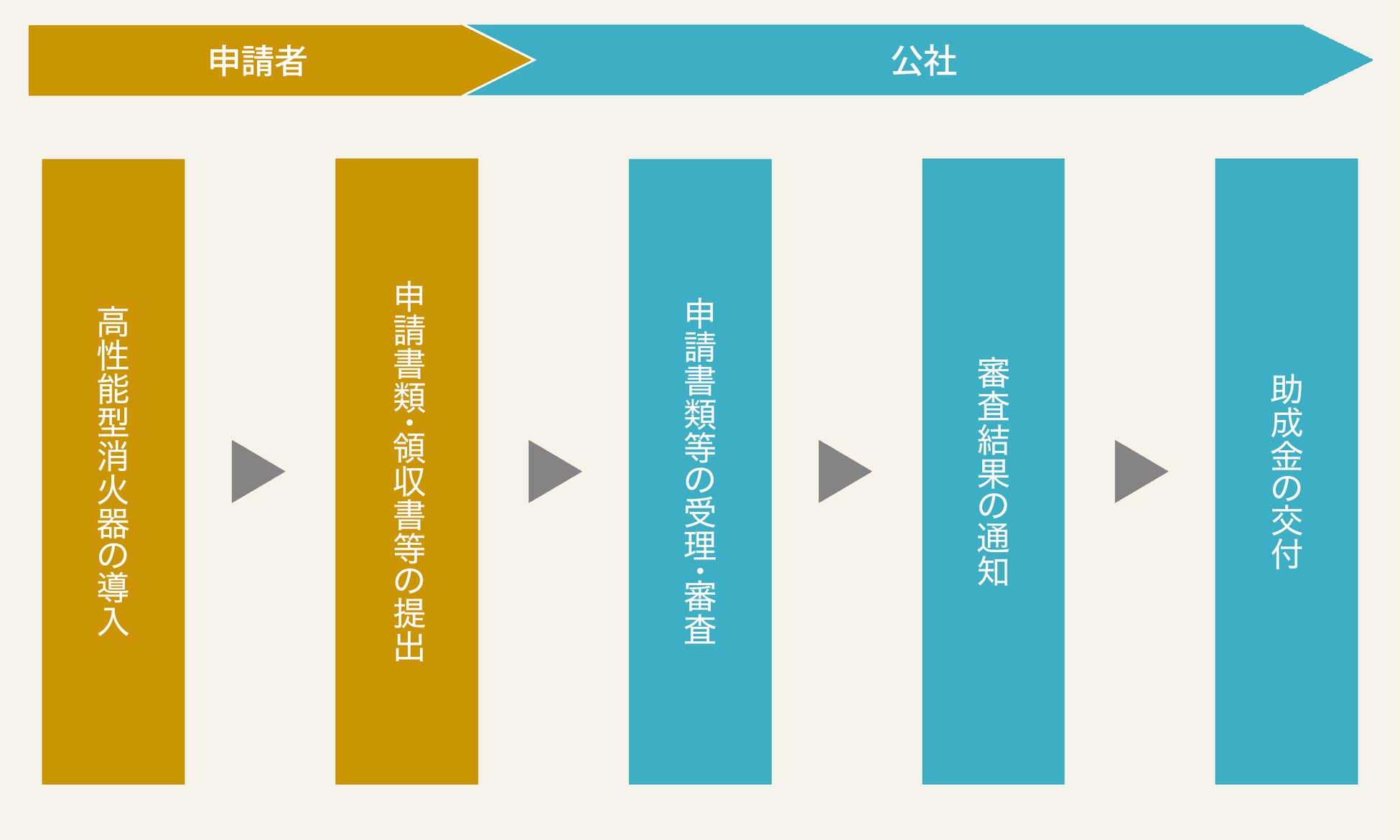 高性能型消火器とは、火災時に誰もが消火しやすいことを目的に、消火能力を著しく向上させた消火器です。本事業では、法定義務を超えて設置する「高性能型消火器」の導入に係る経費を助成対象経費としています。