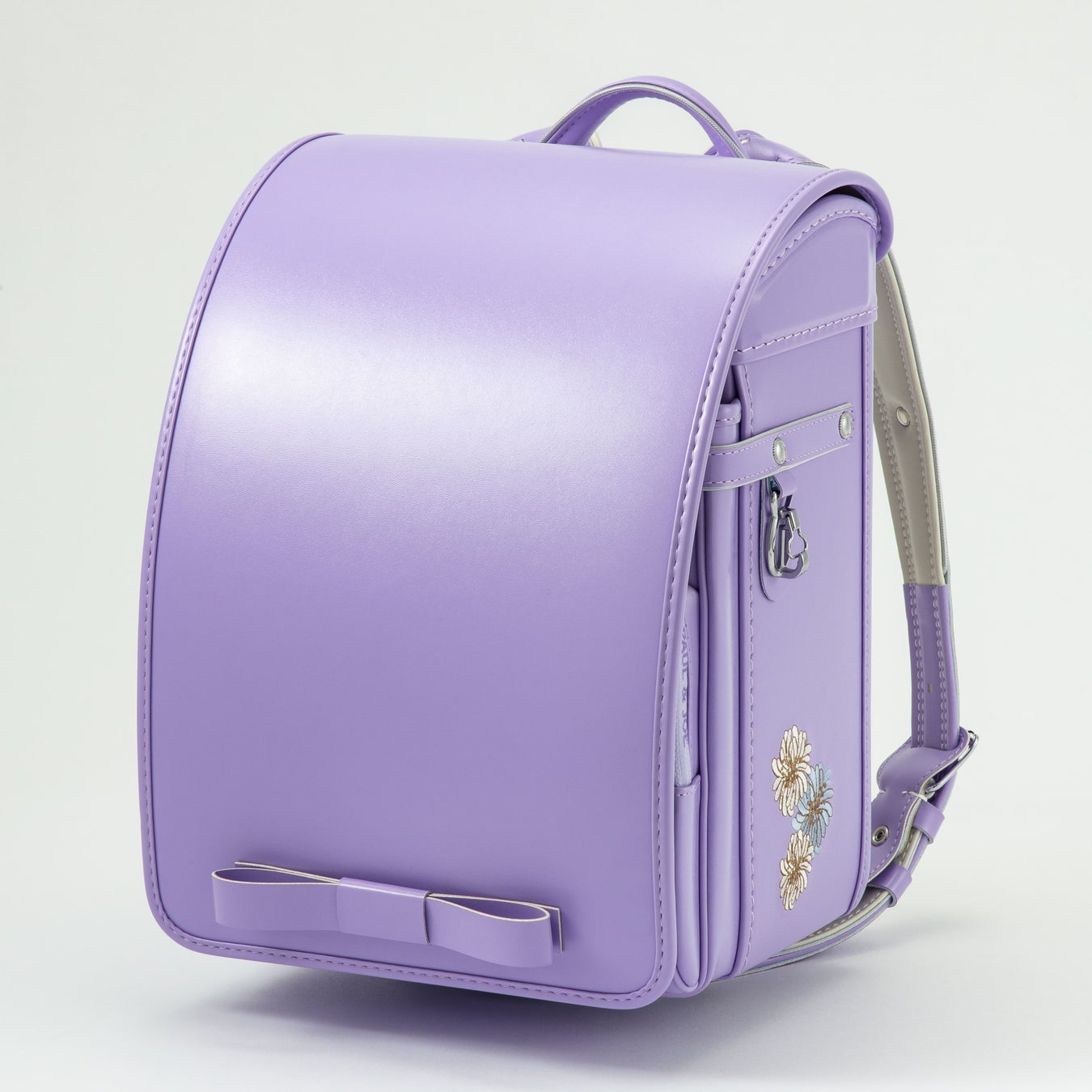 かぶせ、側面ともに「クリザンテーム」の繊細な刺繍が目を引き、大人らしさと可愛らしさを融合させたデザインに。かぶせ裏も「クリザンテーム」のプリントが気品漂う雰囲気で存在感がたっぷり。クリザンテームフレンチリボンランドセル同様、付属品のスカーフがセットになっており、気分にあわせて楽しめるオリジナルカスタマイズが可能。