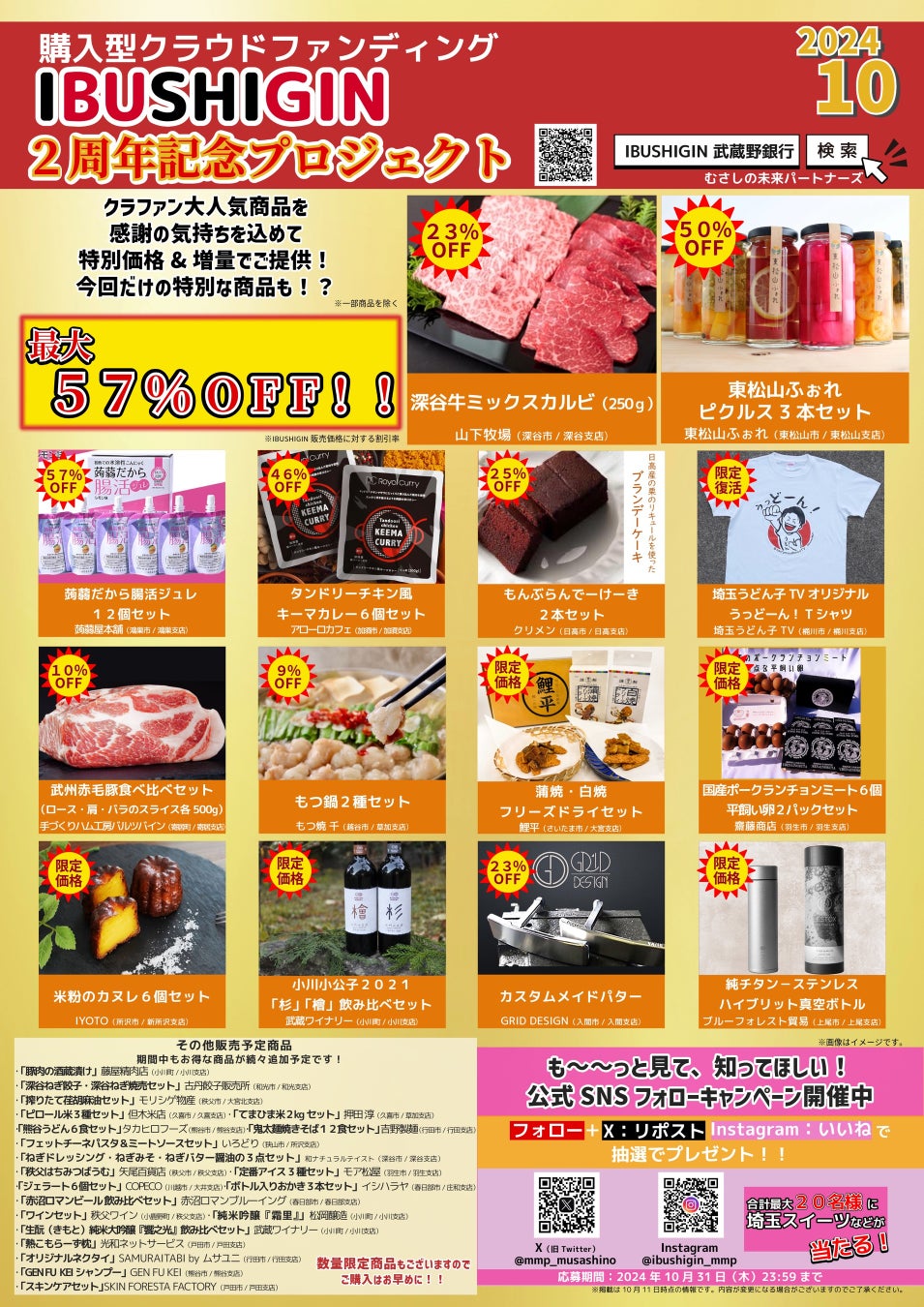 武蔵野銀行グループの「むさしの未来パートナーズ」では、埼玉県内を中心とした事業者の熱い思いや商材の魅力をお届けすべく、2022年10月より購入型クラウドファンディング『IBUSHIGIN』を立ち上げ、この度2周年を迎えました。