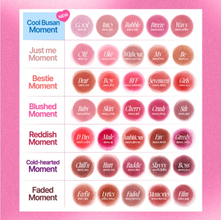 既存の6つのモーメント、全30色に「Cool Busan Moment」が新たに加わり、