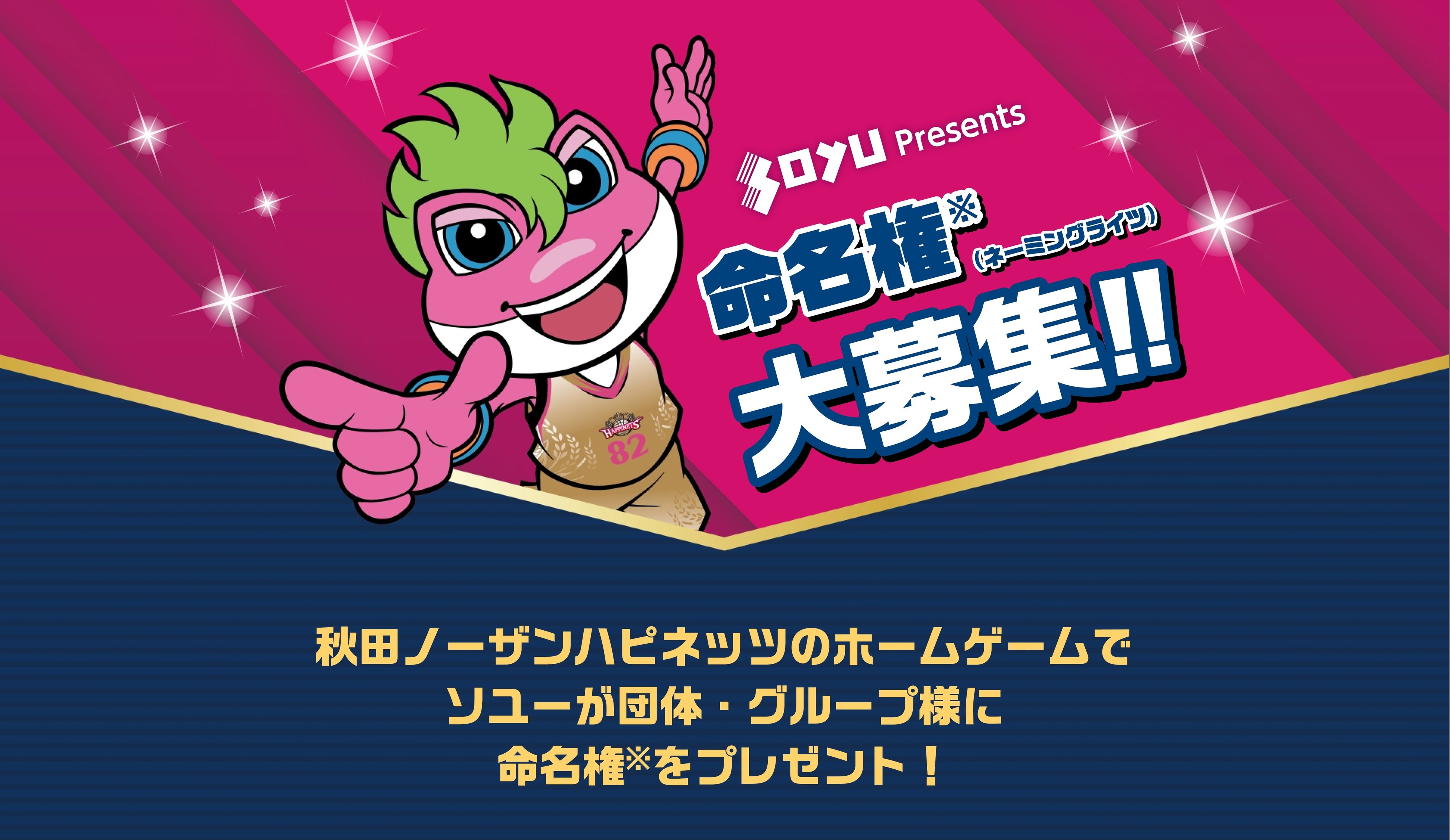 秋田ノーザンハピネッツ「ホームゲーム命名権」を株式会社ソユーがプレゼント!
