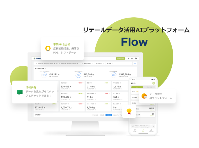 Flowはこれまでに900以上の店舗で導入され、売上前年比+25%などのKPI向上を実現してきました。