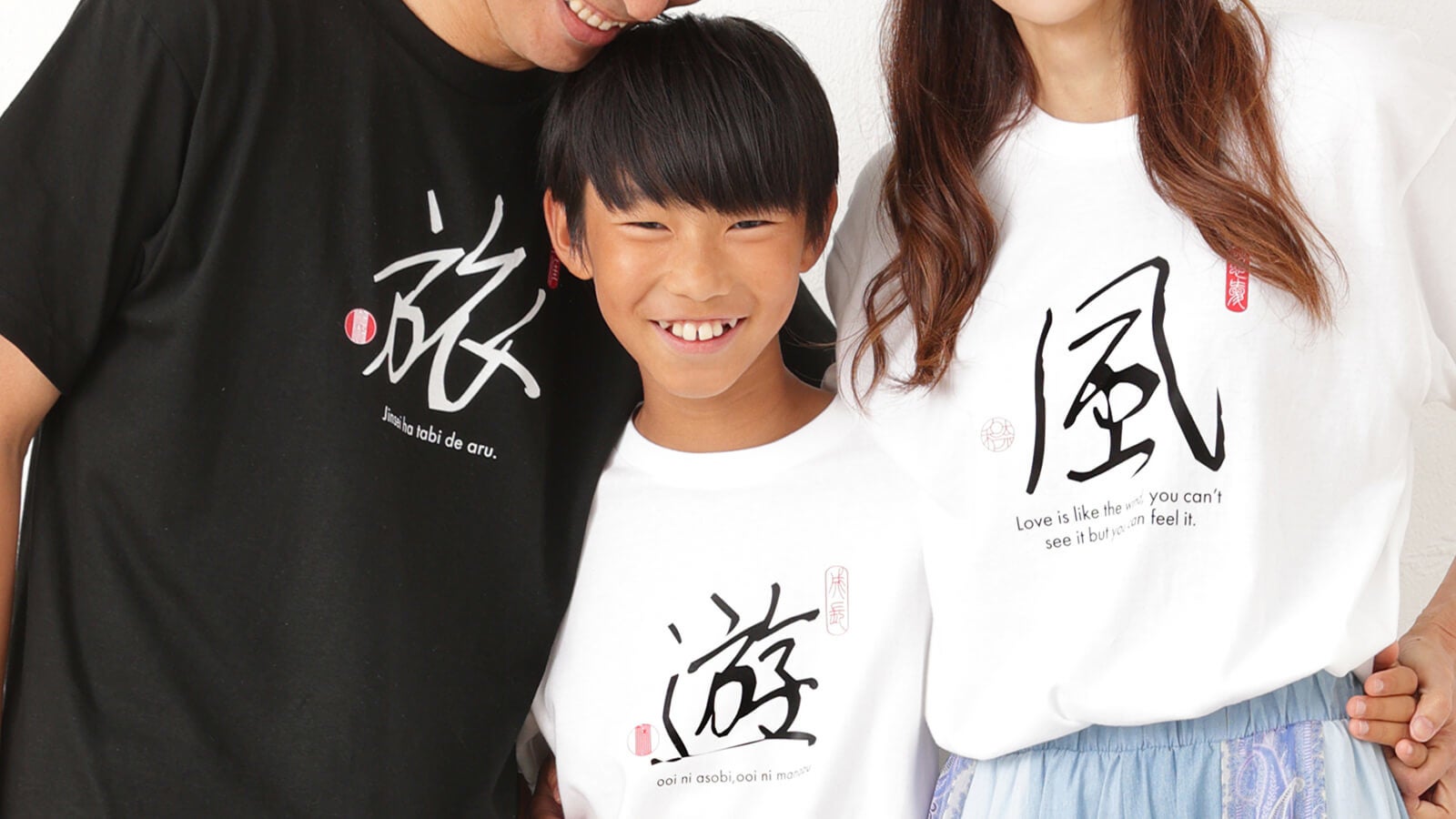 書や印鑑とTシャツプリントは相性が良く、シンプルなデザインと必要最低限の色数が、映えるTシャツとしてデザインが成立します。