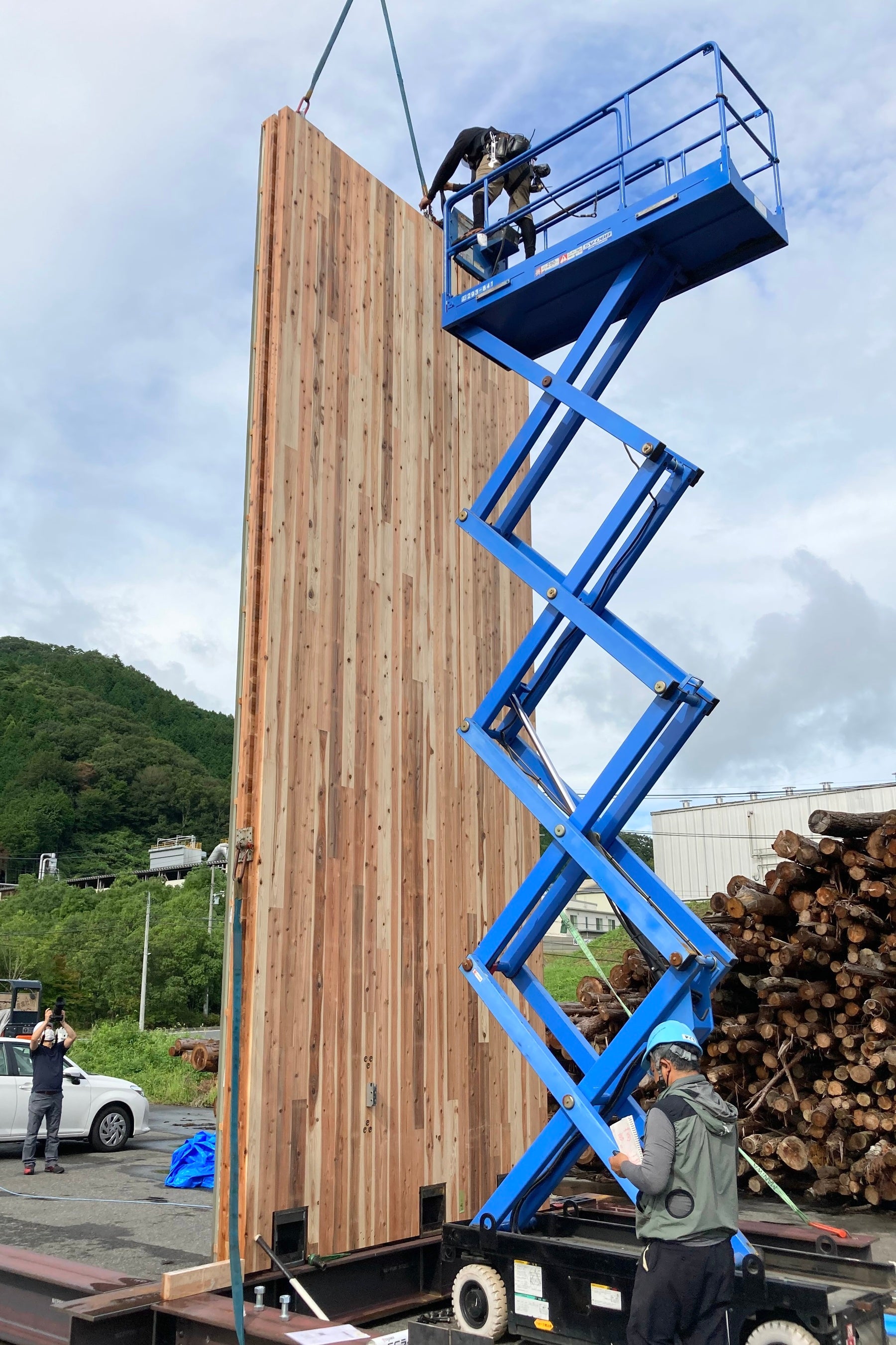 CLTの仕様:壁(210mm厚/5層7プライ/Mx90A-5-7/ヒノキ・スギHB)・床(36mm厚/3層3プライ/Mx60-3-3/スギ)・屋根(36mm厚/3層3プライ/Mx60-3-3/スギ)