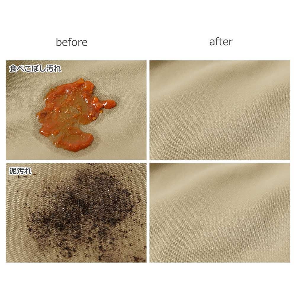 洗濯時に、食べこぼし汚れや、お外遊びで付く泥汚れが、落ちやすい加工を施しています。