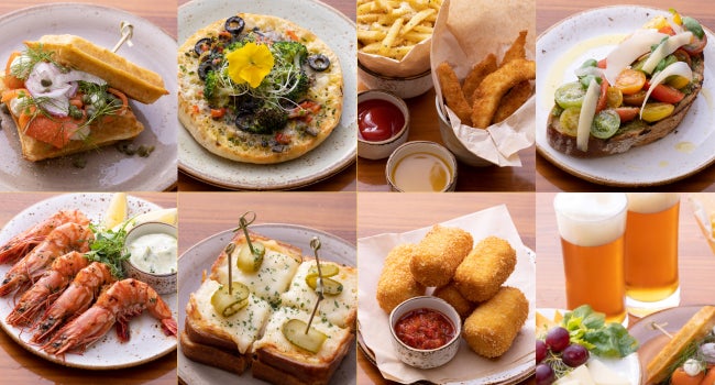 トマトとバジル、パルメザンチーズのカラフルな「ブルスケッタ」(イタリア)や、ベシャメルソースとハムのコロッケにスパイシートマトチャツネを添えた「ジャンボンコロッケ」(スペイン)、すりおろしたポテトで作る自家製ワッフルにスモークサーモンとディル&ケッパーなどを合わせた「ポテトワッフル」(北欧ノルディックスタイル)など、シェフマイケルの料理は、シンプルながら食材の新たな魅力を感じさせてくれるもの。冷えたビールやワインをおともに、シェフ特製の地中海の雰囲気を感じるお料理で午後のひとときをお過ごしください。