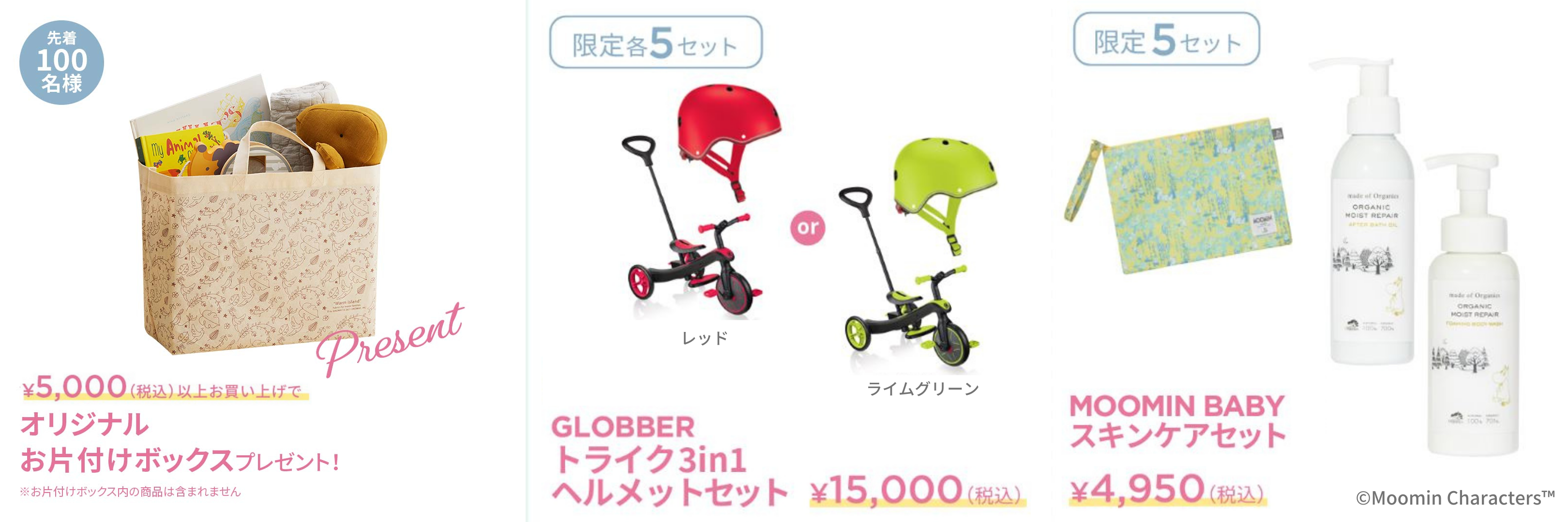 ① 5,000円(税込)以上お買い上げで先着100名様にオリジナルお片付けボックスをプレゼント。
