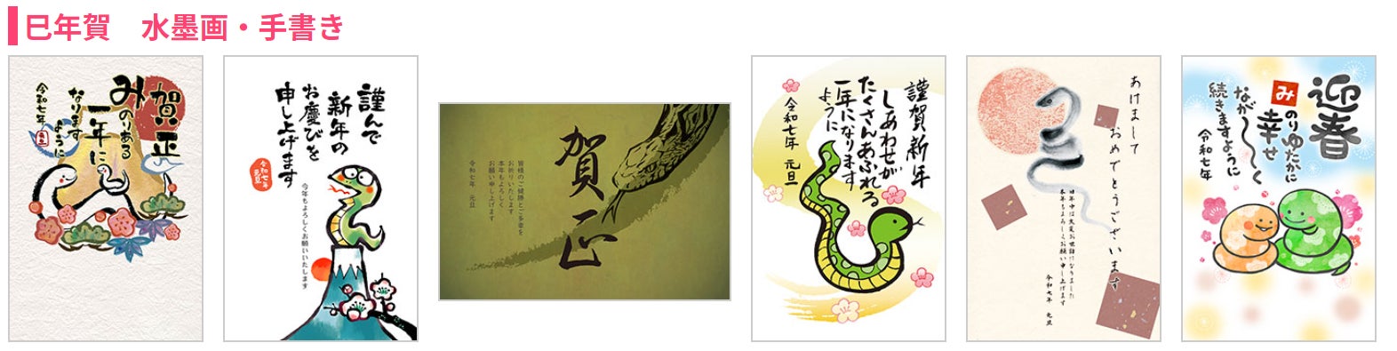 俳句素材や和風、手書き・水墨画、フォーマルなどの年賀状を収録!今年は俳句年賀でたのしく味わい深い年賀状を送りましょう。