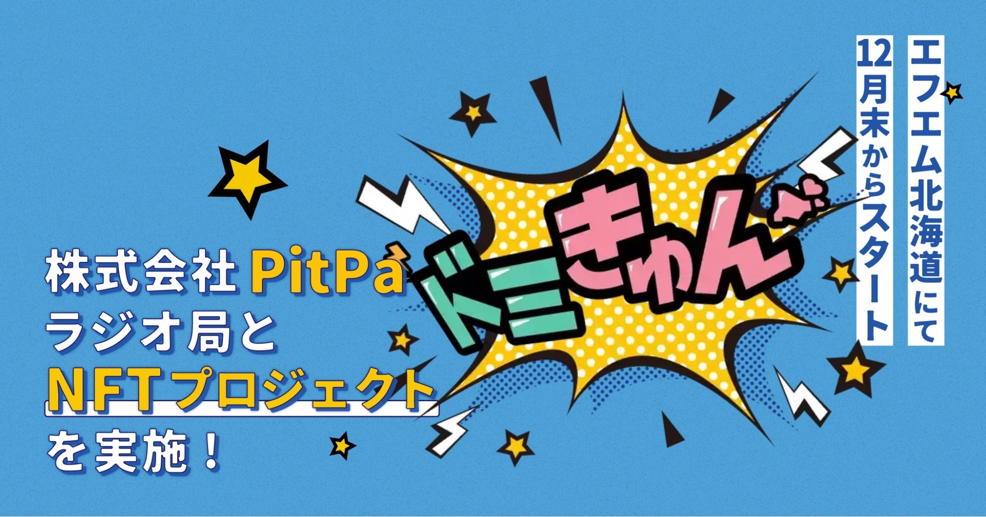 株式会社PitPa(本社:東京都渋谷区、代表取締役:石部達也、以下PitPa)は、株式会社エフエム北海道(本社:北海道札幌市、代表取締役社長:土屋敦司、以下AIR-G’)のラジオ番組『ドミきゅん』内でスタートするNFTプロジェクトにおいて、NFT(非代替性トークン)発行、DAO(分散型自律組織)運営などに関わり、ラジオ番組の新たなビジネスモデルの創出をサポートいたします。