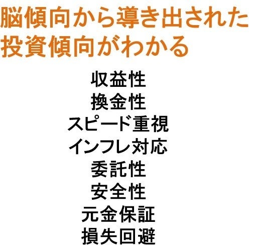 Ai投資などが流行しておりますが、過去の取引実績からの導き出しが主流で個人の特性や脳の傾向性は反映されておらず、結果として「ミスマッチ」が生じているのも事実です。個人の性格や特性によってリスクの捉え方も異なります。満足できる投資商品を選択するには、金融リテラシー向上はもとより、脳の傾向性を客観的に理解して、投資商品に対する満足度や重視度を測ることが重要です。