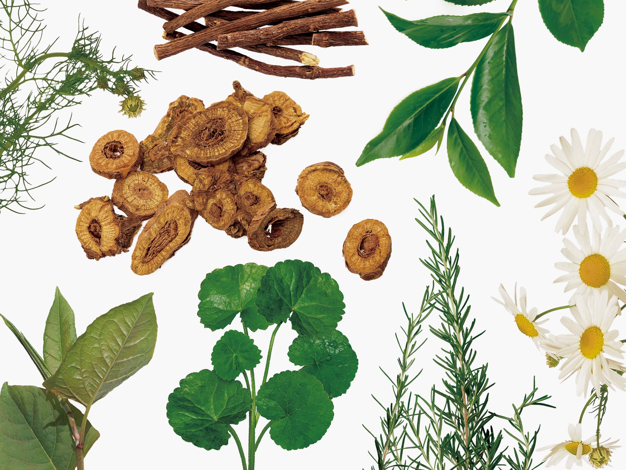 チャ葉エキス、カンゾウ根エキス、カミツレ花エキス、