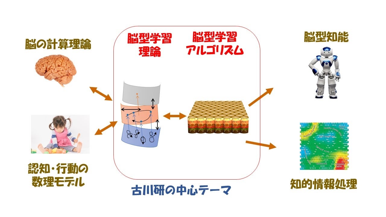 古川氏は、知能の計算原理となる学習理論とアルゴリズム開発の研究をしています。とくに、複数の異なる学習課題を学ぶことを通して、課題間に共通する汎用モデルを獲得するメタモデリングの研究を中心に取り組んでいます。メタモデリングは、未知の状況にも柔軟に適応するシステムを実現するうえで重要なテーマです。古川はまた、また複雑な構造を持つデータを多様体ネットワークとしてモデル化する方法の研究にも取り組んでいます。多様体ネットワークにより、ユーザーは視覚的な検索と探索を通して知識発見したり、ユーザー自身のケースを検 証・予測したりすることができます。とりわけ多様体ネットワークは、人間の多様な感性に関するデータのモデリング・解析・予測に適しています。