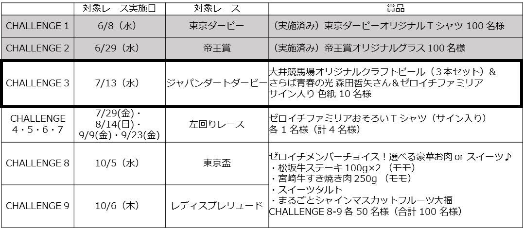 7月12日(火)17時より、本キャンペーンのPRアンバサダーを務める森田哲矢さん(さらば青春の光)とゼロイチファミリアのメンバーが予想対決を行うスペシャルムービー第3弾『ジャパンダートダービー』篇を公開します。