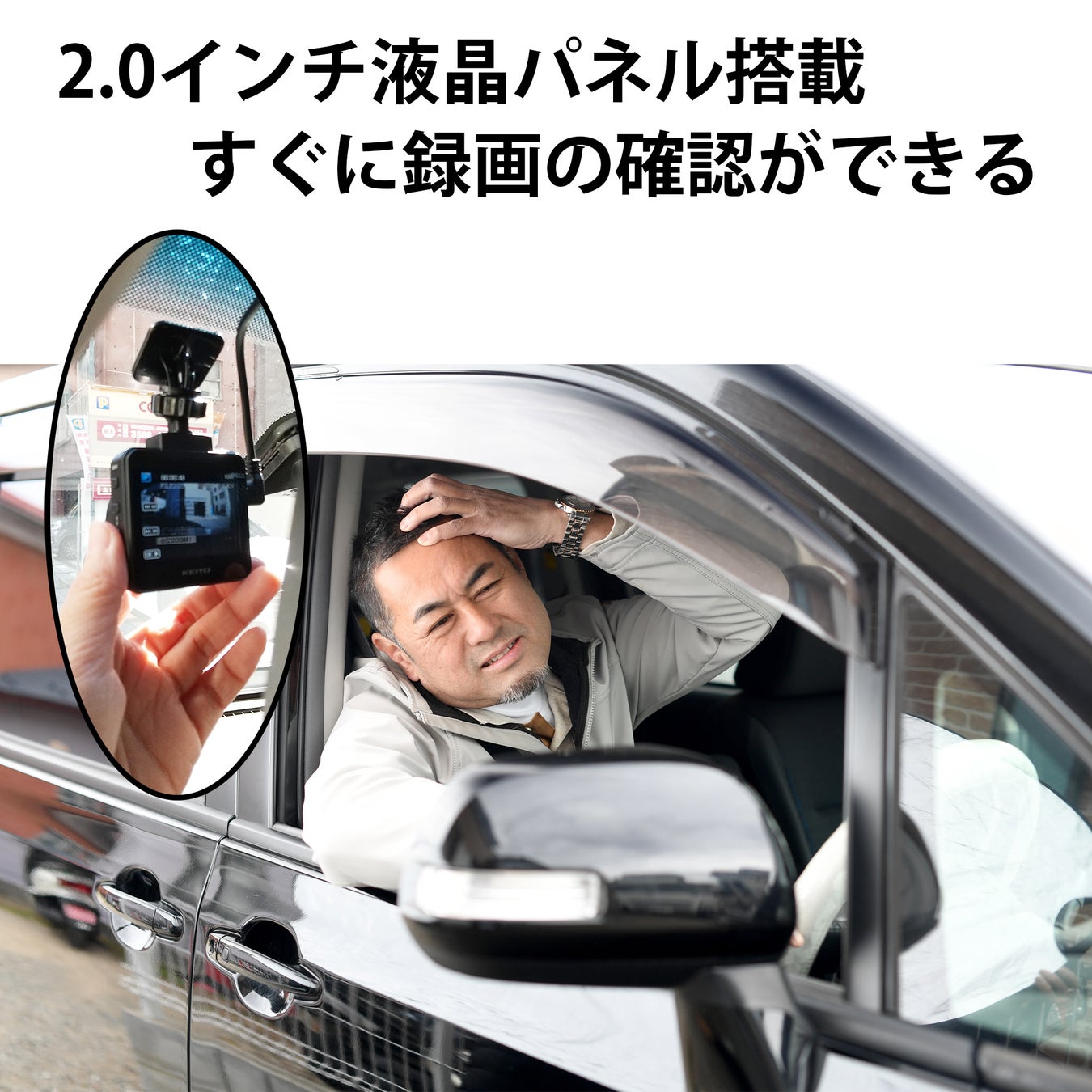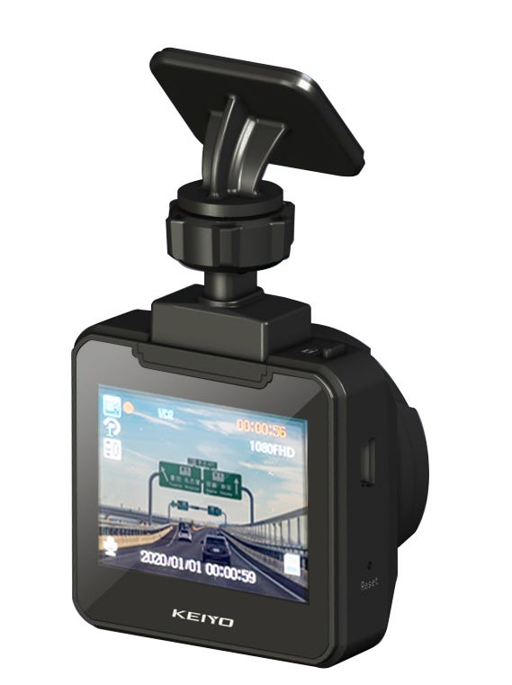 KEIYO新商品 フロントガラスに付けても邪魔にならないコンパクトサイズながら2.0インチ液晶付き お手軽フルハイビジョン録画ドライブレコーダー発売!!