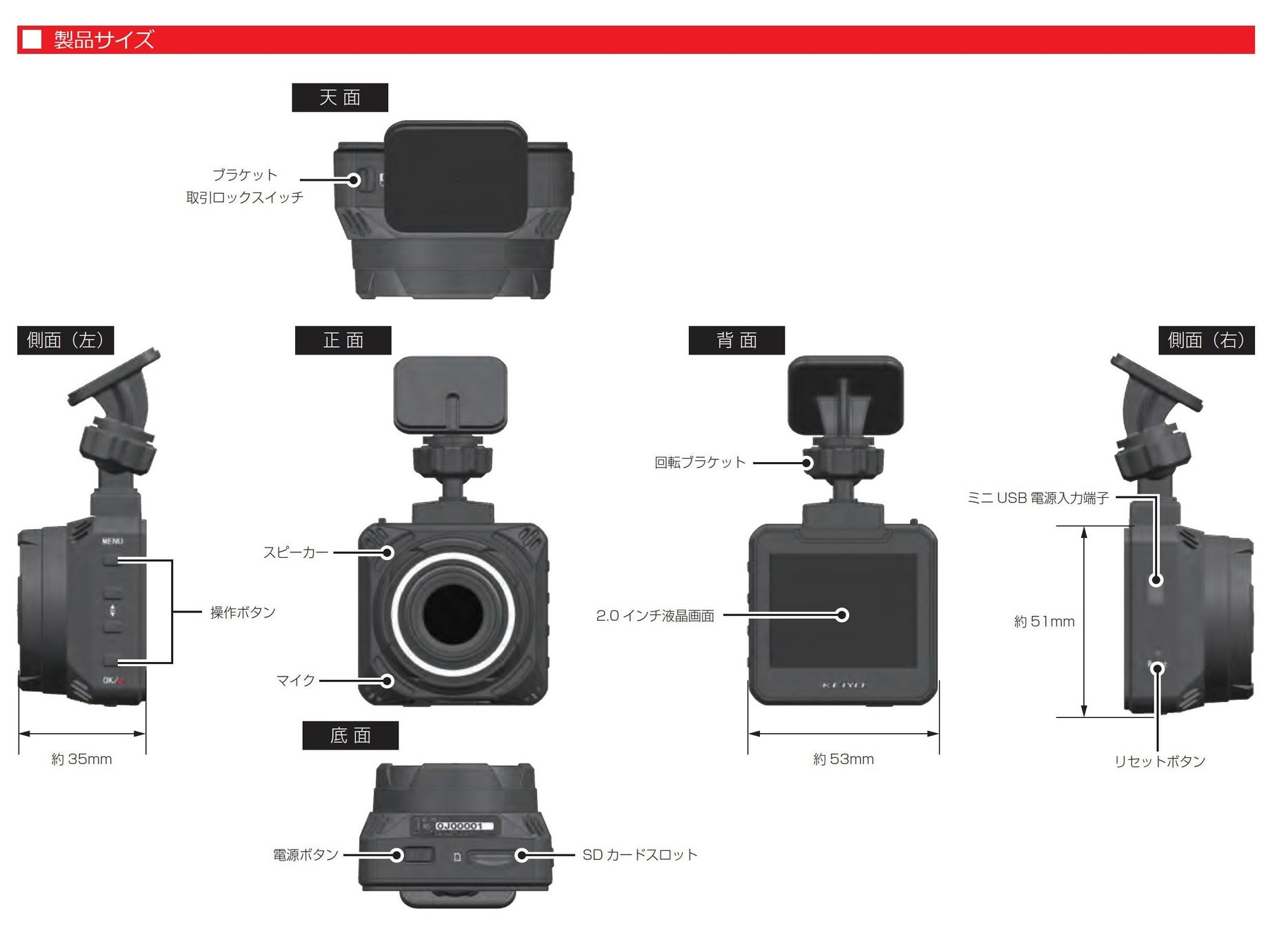 手のひらにすっぽり収まるコンパクトサイズながら、録画データを確認したり操作し易い2.0インチ液晶を搭載し、手軽にお買い求めできるコンパクトドライブレコーダーとなります。
