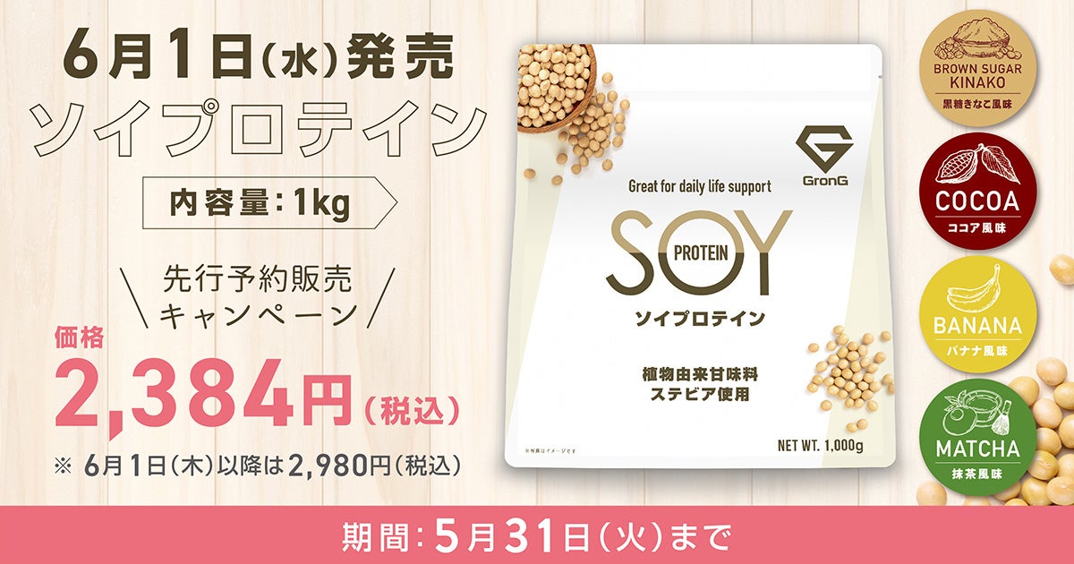 GronG(グロング)、2022年6月1日(水)発売『ソイプロテイン』の先行予約販売キャンペーンを楽天市場店で開始