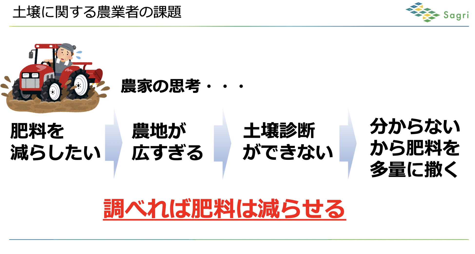 また慣行栽培においても、近年、中国などの輸出規制や、全世界での化学肥料の需要が高まり、肥料の金額が上がっています。農家は経費となる肥料は減らせるのであれば減らしたいと思っているようですが、管理農地面積も広大になっており、土壌診断ができない農地も多く、結果として肥料を撒きすぎてしまっているという状況を変えることができずにいました。