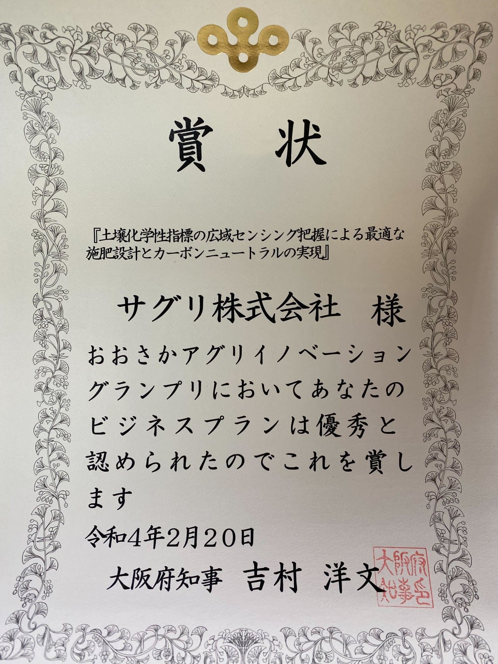 サグリ株式会社は、「人類と地球の共存を実現する」をビジョンに掲げるベンチャー企業です。2019年2月28日には、Get in the Ring OSAKA 2019で優勝し、2021年11月には近畿経済産業局長より、J-Startup KANSAIに選定されました。