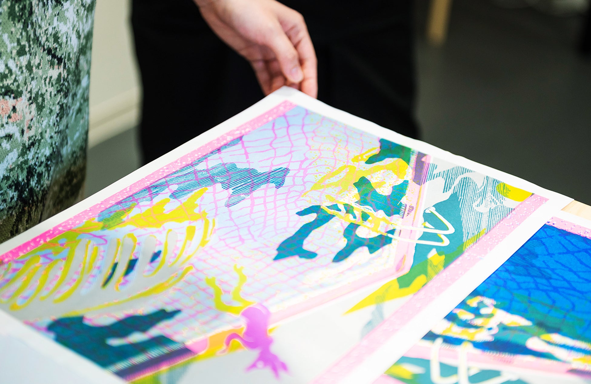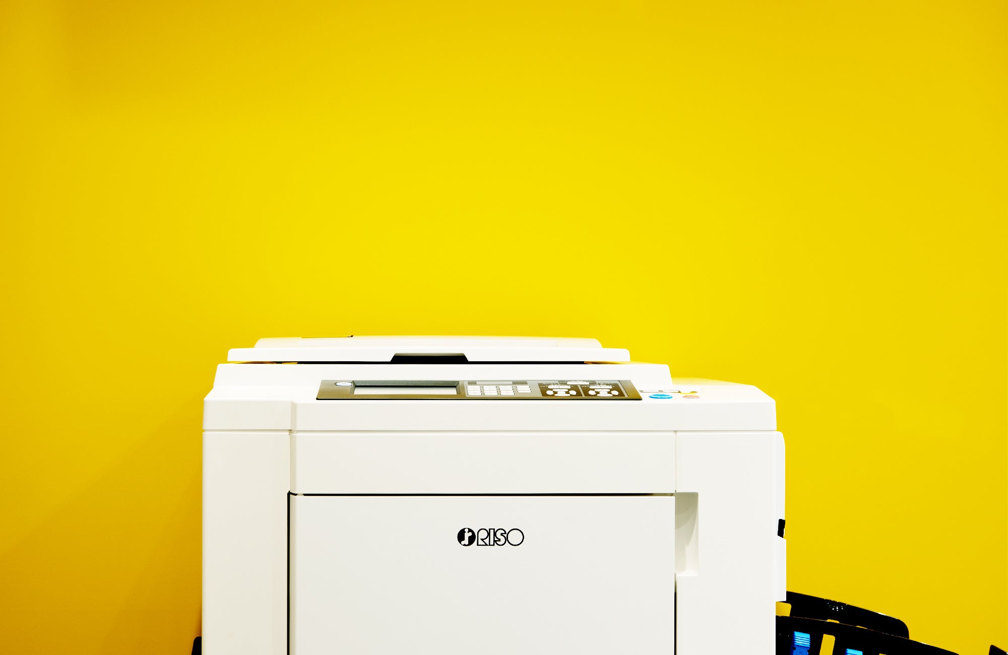 リソグラフ印刷とは、「デジタル孔版印刷 」 という印刷技法のことをいい、主に学校や公共施設のプリントやスーパーのチラシなどに採用されています。色の重なりや印刷のズレから生まれるアートな仕上がりが、「デジタル版画」として海外のアーティストに注目され、アートツールとしても活用されています。