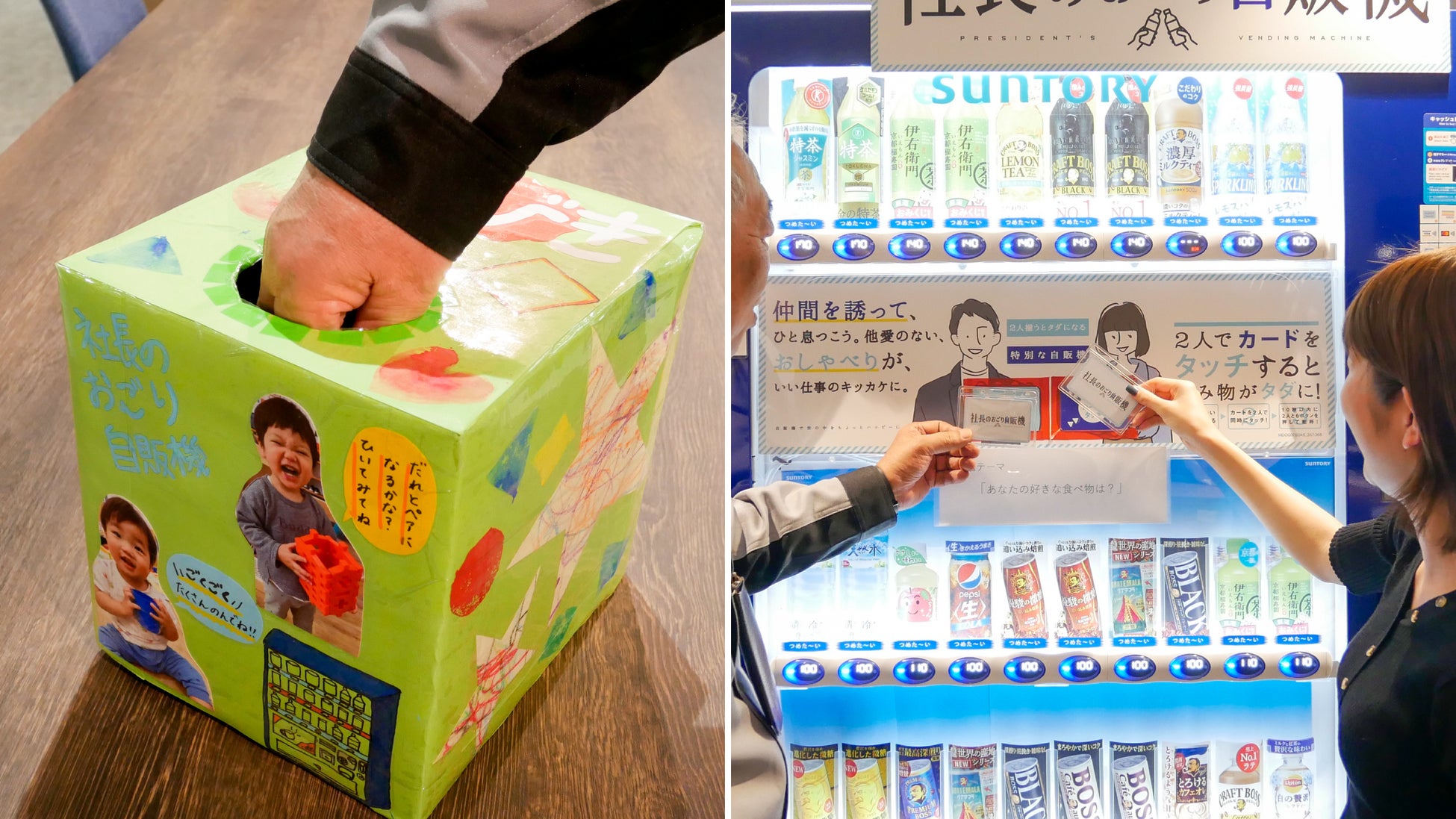 同自動販売機は、通常であれば1人でするドリンクの購入を2人同時に行うことで、コミュニケーションのきっかけが生まれて社内の交流がより活性化することを期待して設置を決定いたしました。