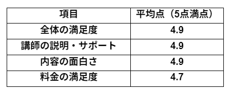 「講師が優しく雰囲気が良く、初めてでも安心」