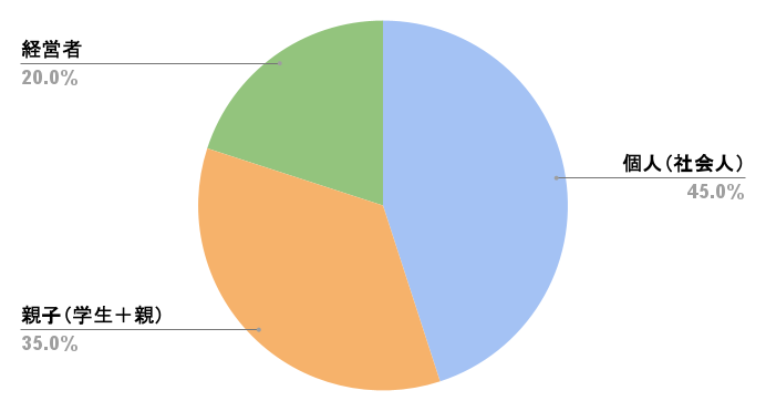 小学校の子供と親の親子や、社会人、経営者など、幅広い層が参加。