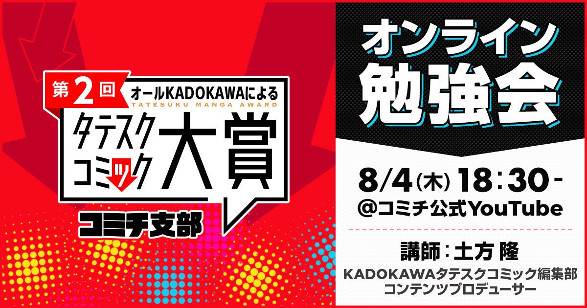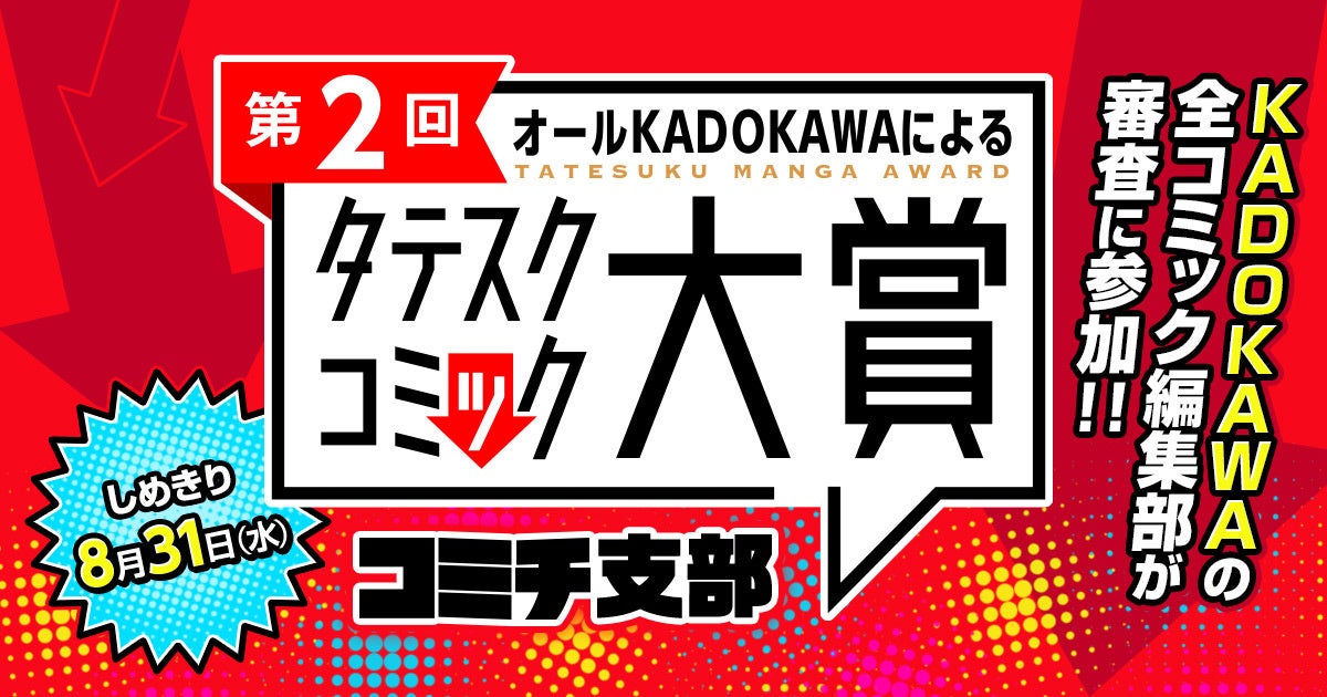 ※「第2回オールKADOKAWAによるタテスクコミック大賞 コミチ支部」への応募作品から選出されます。「第2回オールKADOKAWAによるタテスクコミック大賞」本体への応募作品は対象外となりますので、ご注意ください。