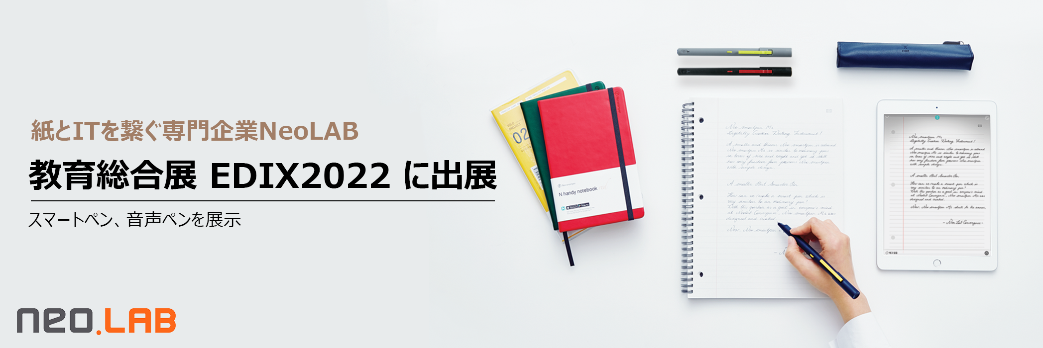 アナログとデジタルを繋ぐ専門企業NeoLAB株式会社(読み:ネオラボ、以下NeoLAB)では、2022年5月11日(水)~5月13日(金)東京ビッグサイト(西展示棟)にて開催する「第13回 教育総合展(EDIX)東京」に出展いたします。2つのテーマで、アナログの素晴らしさを大切にする、家庭でのご利用や、企業様の製品に取り入れやすいサービスをご提案します。皆様のご来場をお待ちしております。