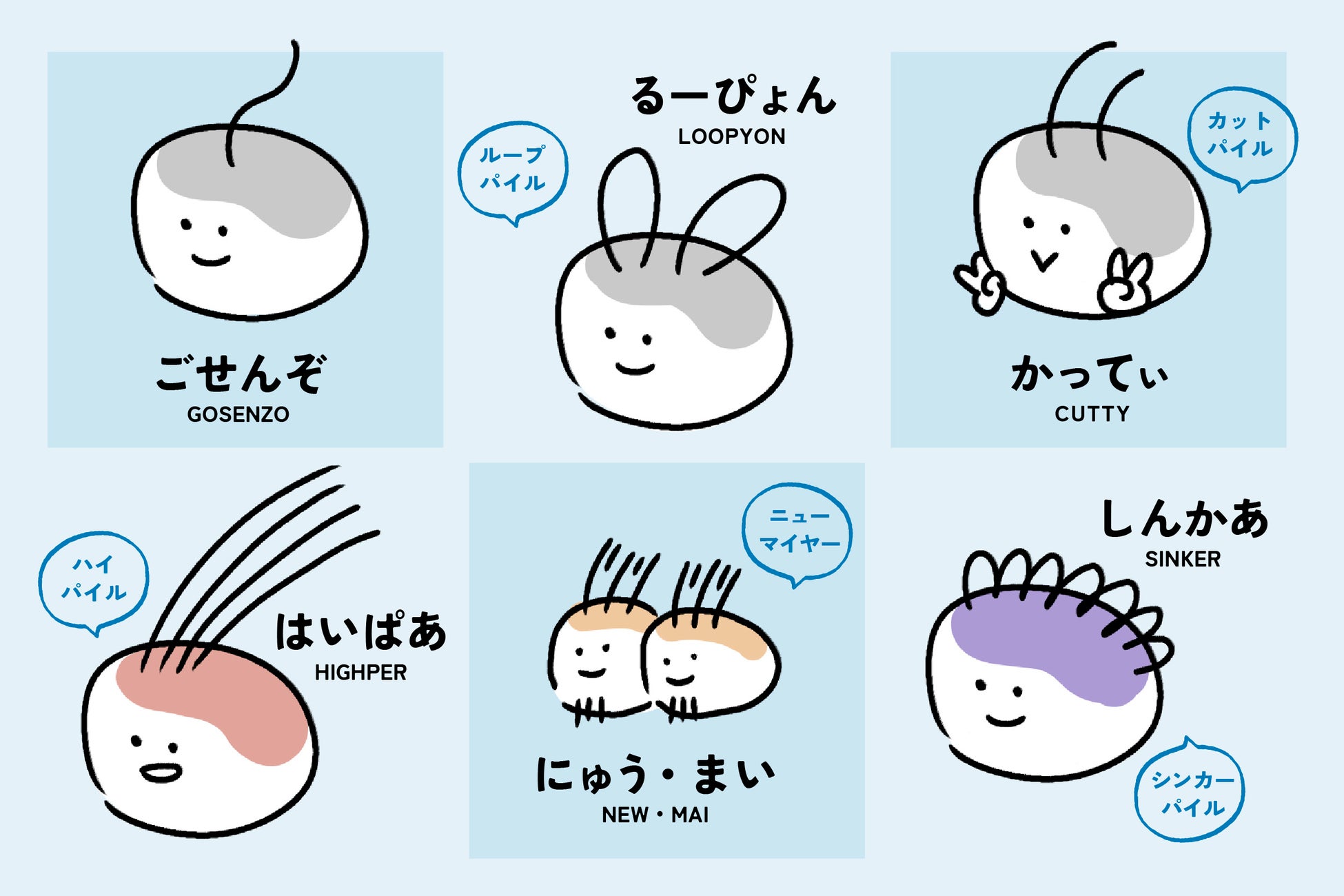 よりパイルの魅力を分かりやすく、日常で見かけるパイルに親しみをもっていただくために、パイルの種類と構造をモチーフにしたキャラクターを制作しました。SNSや商品、イベント、コラボレーションなどで展開を予定しています。