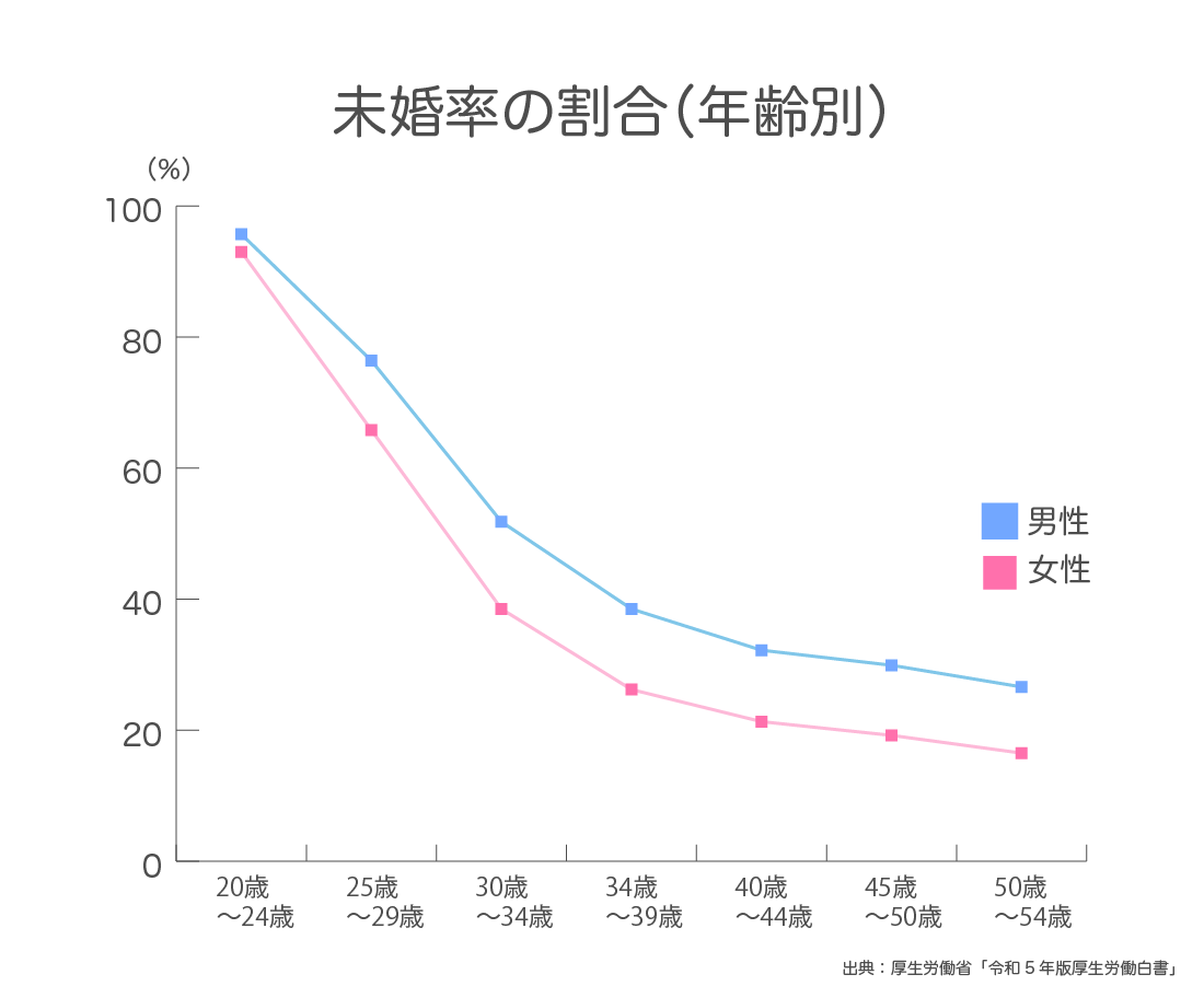 結婚願望のある人にとって、生涯未婚率や年齢別の未婚率は気になるデータでしょう。
