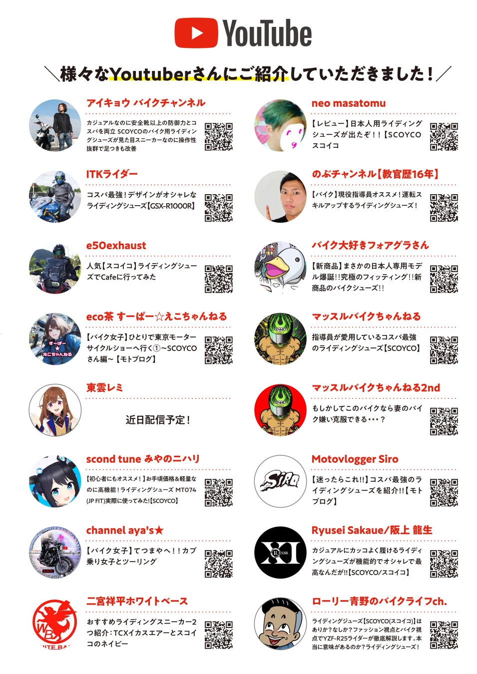 SCOYCOシューズを紹介してくださった歴代YouTuberを動画&パネルでご紹介します。