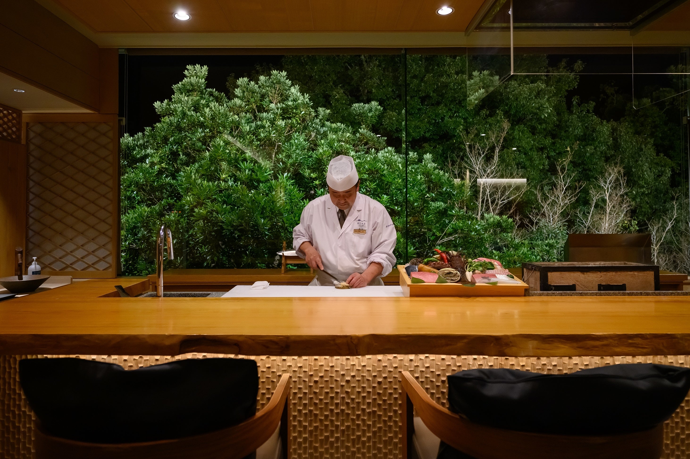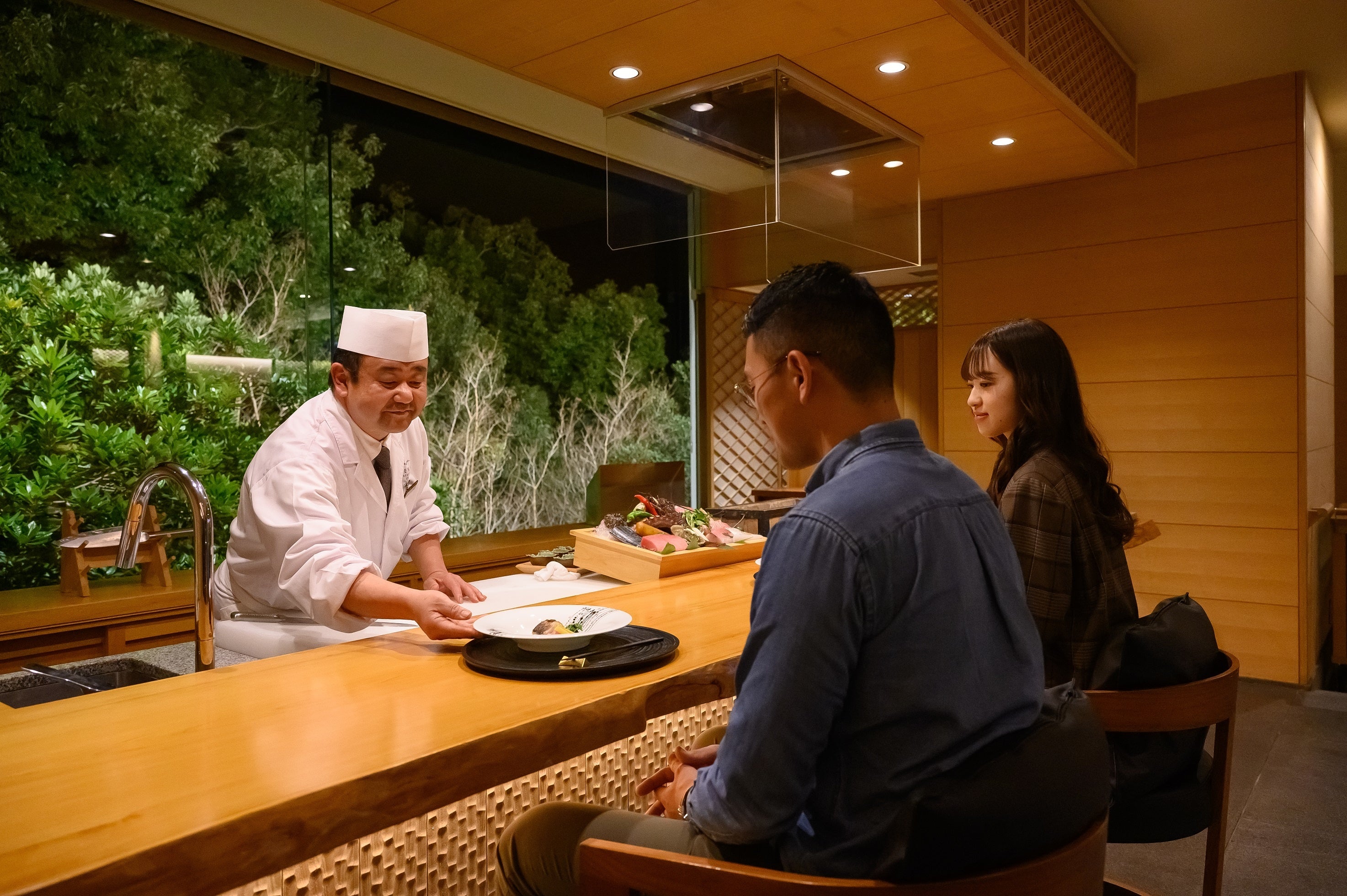 割烹カウンターで「伊勢海老・鮑・松阪牛」を使用した特別コースをご用意。