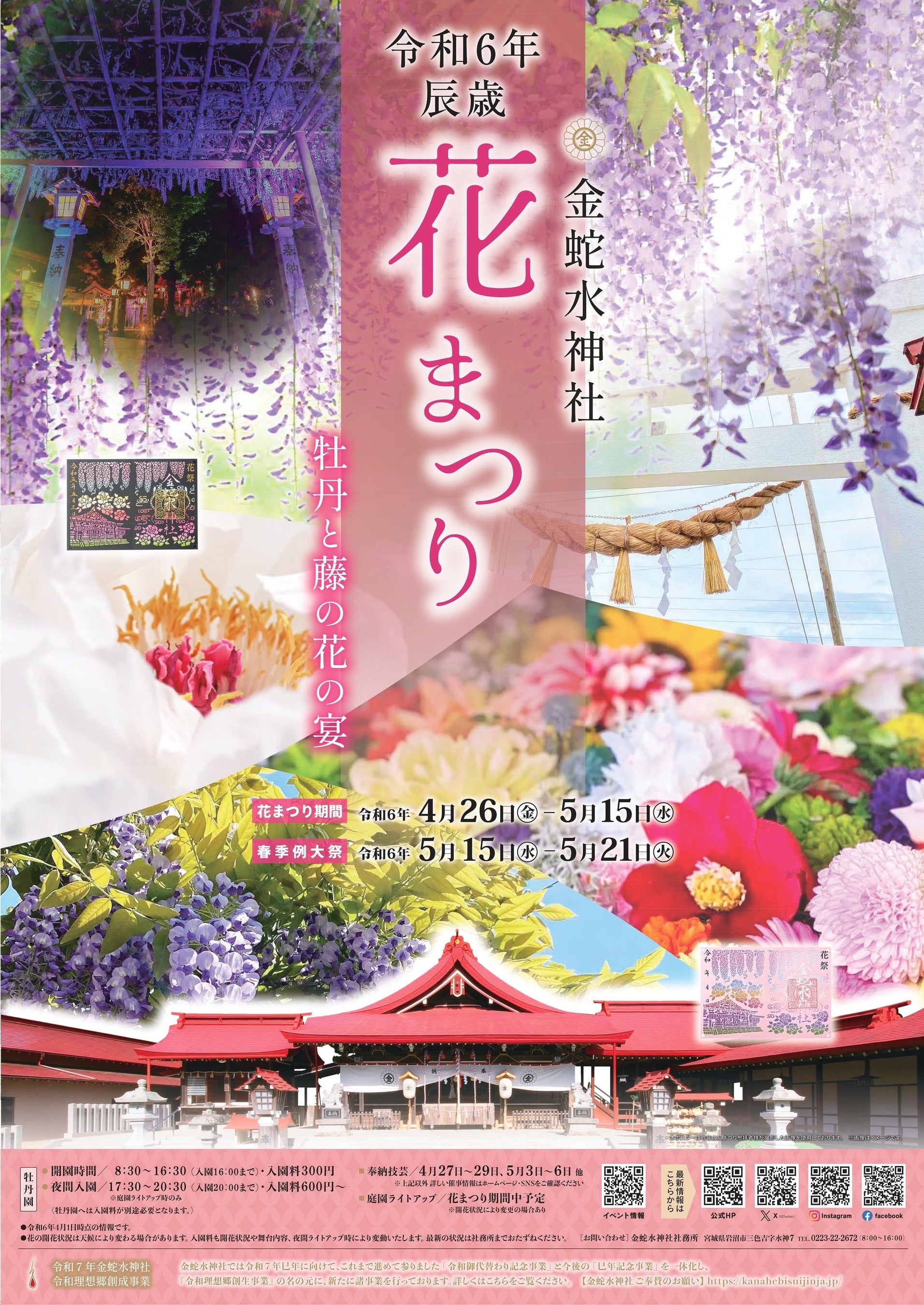 宮城県岩沼市三色吉に鎮座しております金蛇水神社(かなへびすいじんじゃ)の花まつりが4月26日から5月15日に開催、また令和7年巳年へ向け「禊場」が竣工します