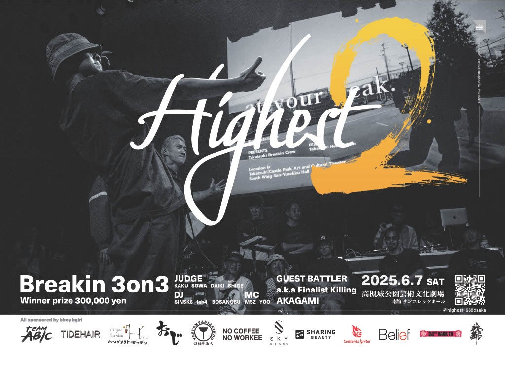 株式会社シェアリング・ビューティー(本社:東京都渋谷区、代表取締役:坂本幸蔵)は、2025年6月7日(土)に大阪府高槻市で開催されるブレイクダンスイベント「Highest 2」に協賛いたします。
