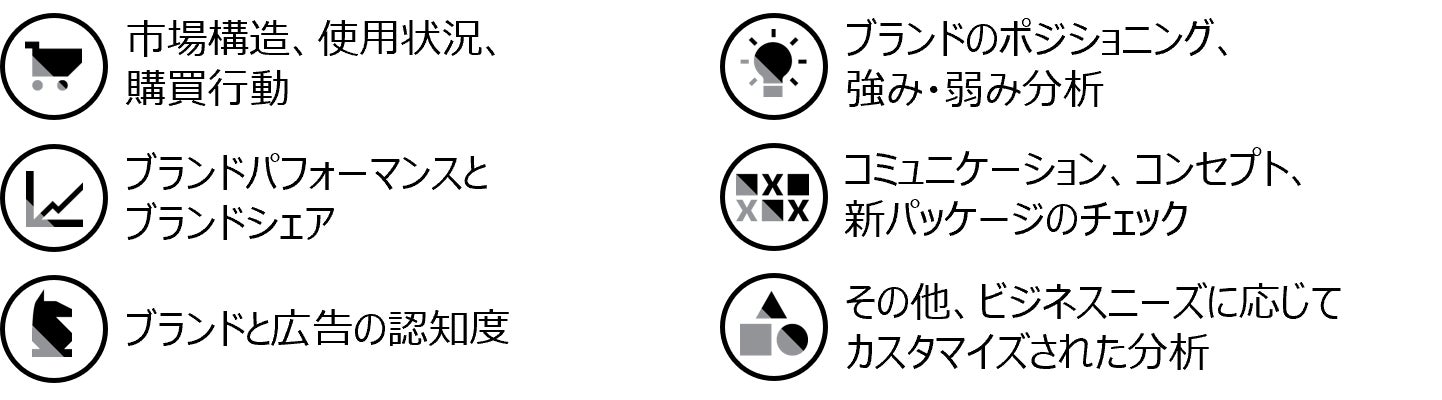 - 調査費用: 10万円/1問 (海外市場で聴取する場合は750米ドル/1問) ※ 聴取したい質問数分の費用が発生します。