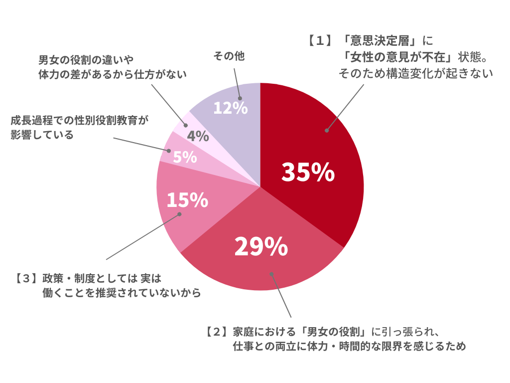 【1】「意思決定層」に「女性の意見が不在」状態。そのため構造変化が起きない(35%)