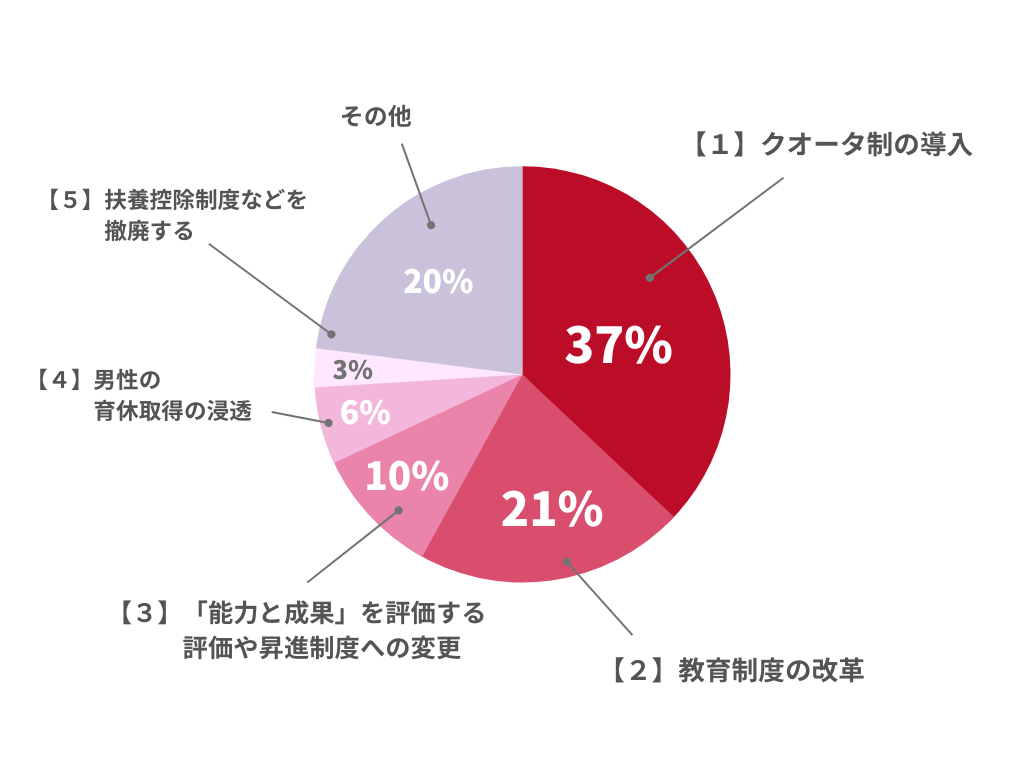 改善策は「政府、企業への『クオータ制』の導入」が圧倒的多数!