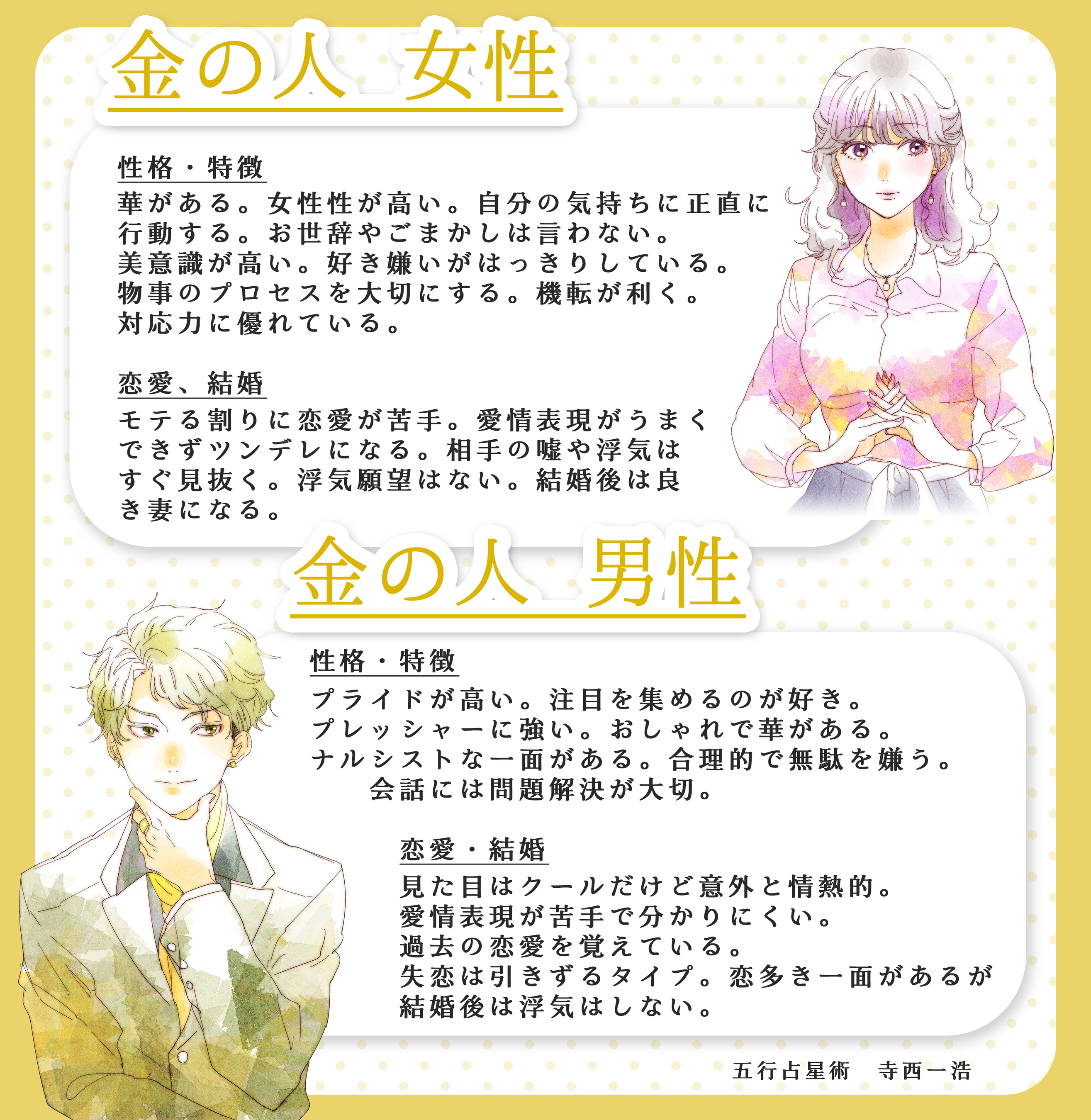 【アーティスティックな男性や華がある女性に多い<金の人>とは?】