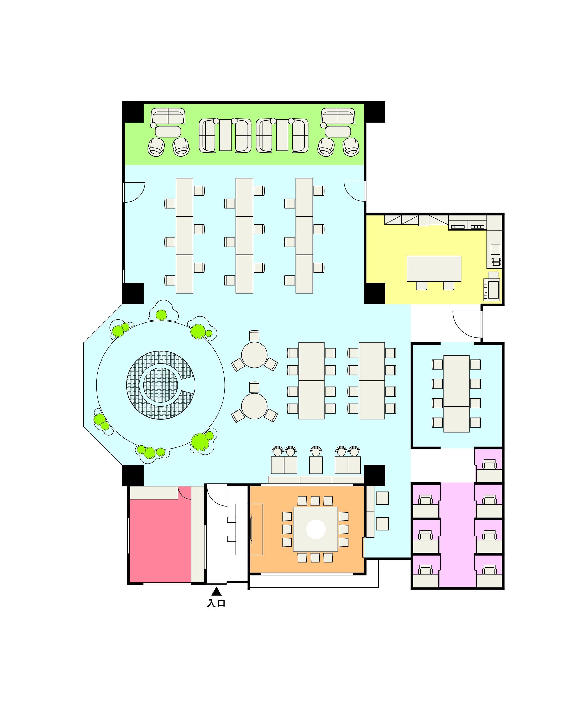 ゆったり座れるソファーラウンジは商談や読書、カフェのような使い方ができるエリアです 。