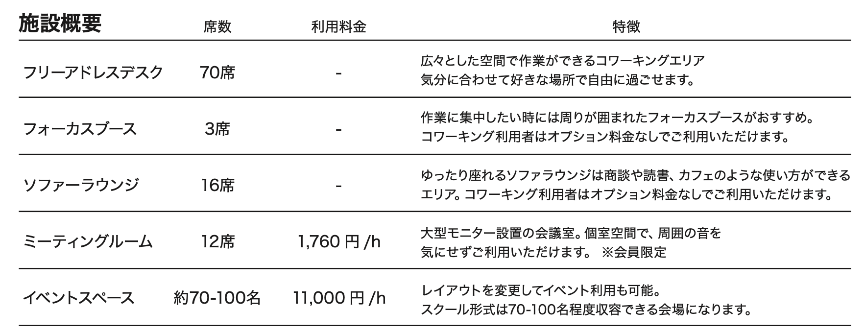 Rental space:どう使うかはアイデア次第、半分以上は、みんなの場所です