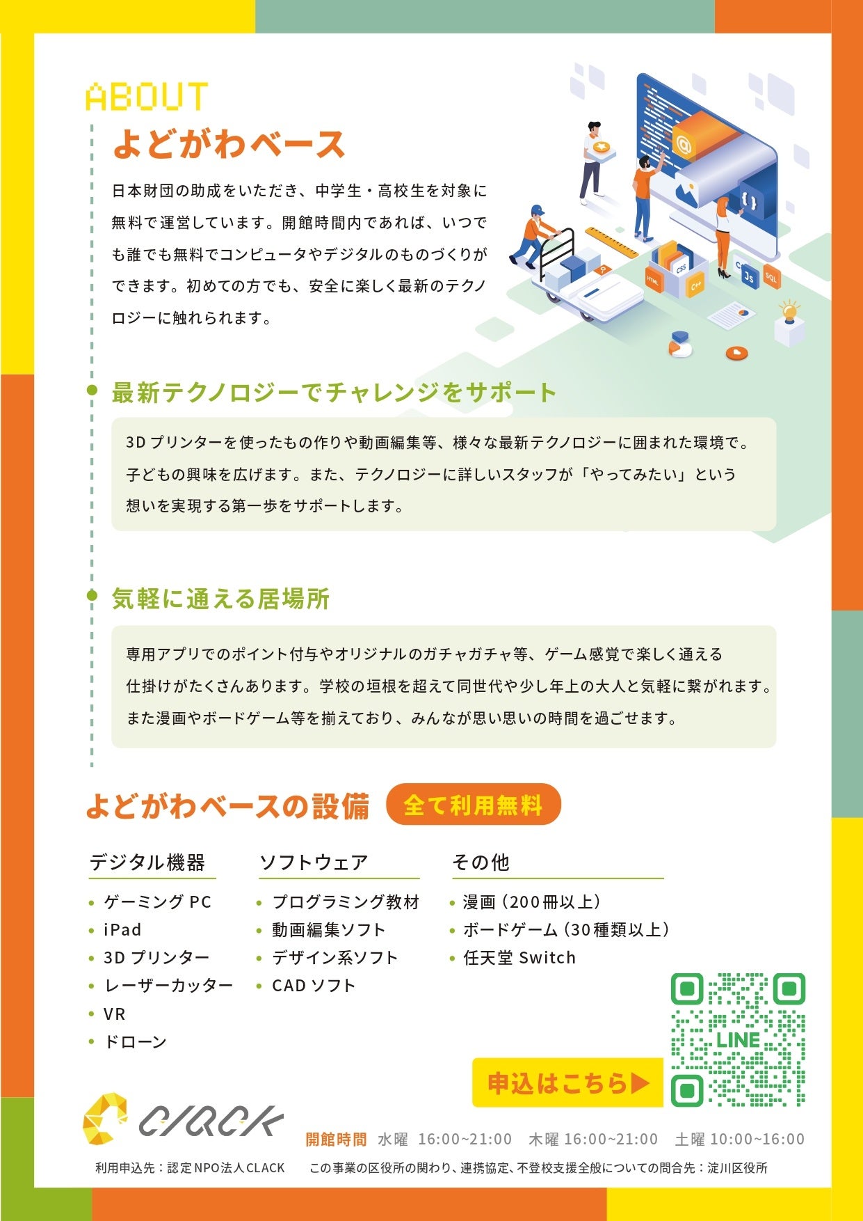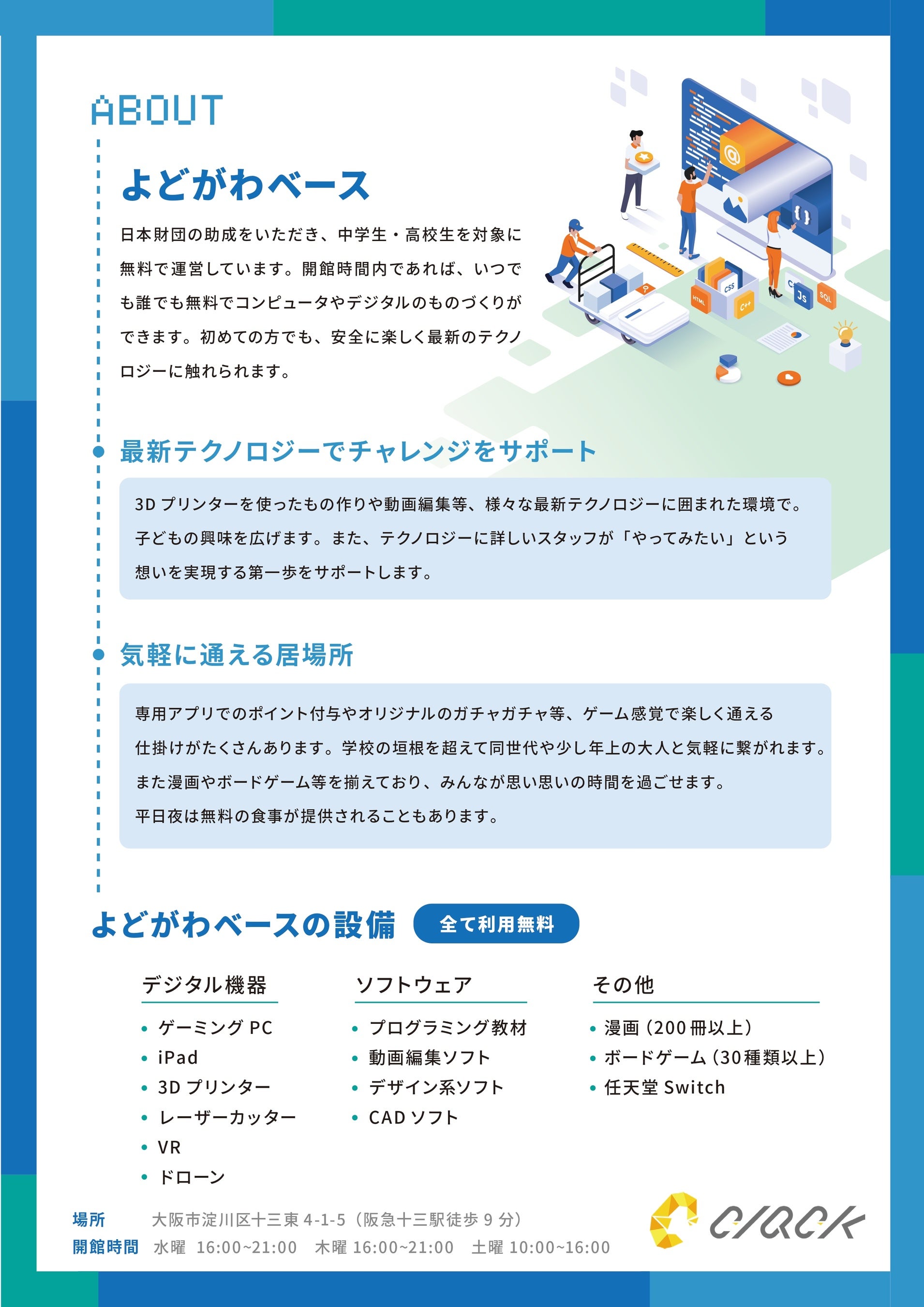 【認定NPO法人CLACK × 大阪市淀川区役所 × 日本財団】デジタルを活用した中高生の居場所「よどがわベース」を開設