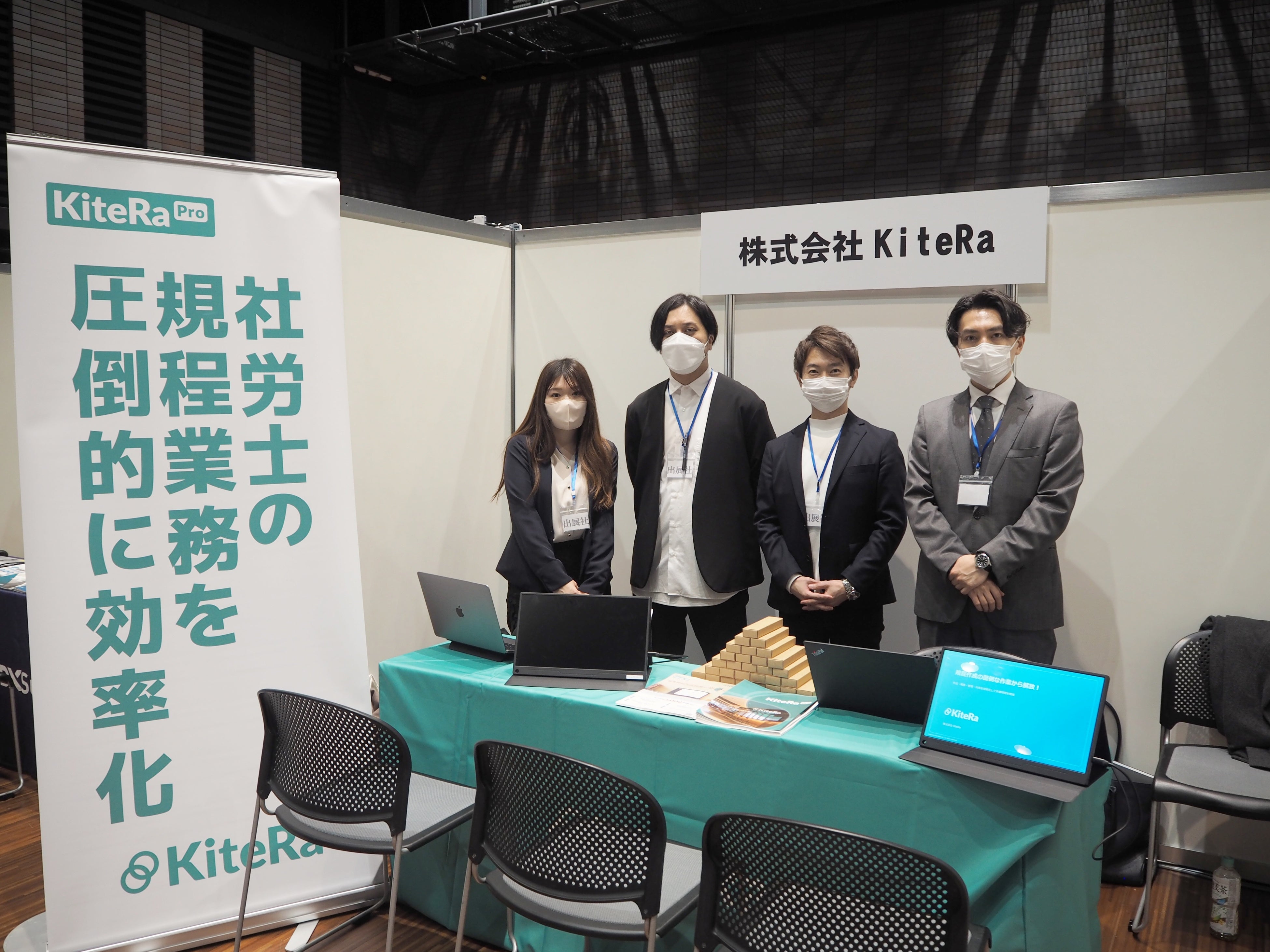 当社は個別ブースにて社労士向け規程業務効率化サービス「KiteRa Pro」の展示・操作説明を行い、規程業務において社労士の方が抱える課題とそれに対する当社サービスの活用法、導入実績をもとに当社サービスによってどれくらい業務効率化が進んだのかについてご案内。当社サービスを初めて知っていただいた方をはじめ、既にご導入いただいている社労士の方にも立ち寄っていただき大盛況でした。お立ち寄りいただいた皆様、ありがとうございました!