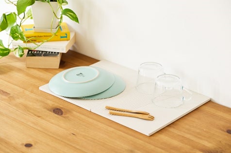 一方、ドライングプレートは、キッチンでの使用を想定した設計で、グラスや箸など小物には1枚、大きな食器には2枚を組み合わせて使用することで、用途や配置を自由にカスタマイズできます。デザイン性と機能性を兼ね備えたこの商品は、お部屋全体の統一感を高め、日常にちょっとした特別感をプラスします。