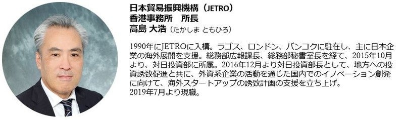日本貿易振興機構(JETRO)香港事務所の高島大浩所長は、『日本と香港のビジネス協力のこれから』と題した講演の中で、経済面において変わらぬ一国二制度の現状、人口8,600万人を擁する成長地域=広東・香港・澳門大湾区(以下、グレーターベイエリア)でのビジネス機会について語ります。