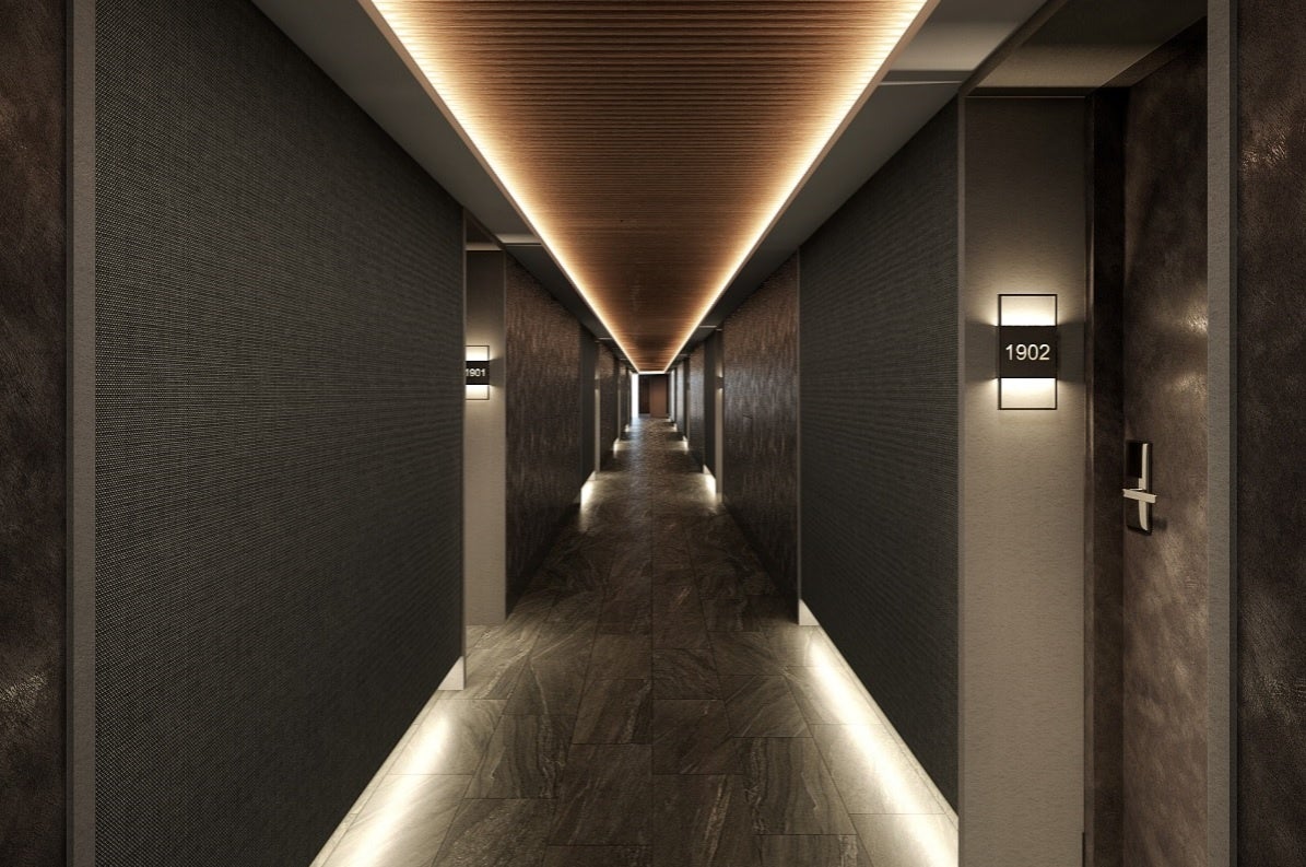 エレベーターホールや廊下を含め、9階全体を、黒を基調とした落ち着いた特別フロアへと一新いたします。