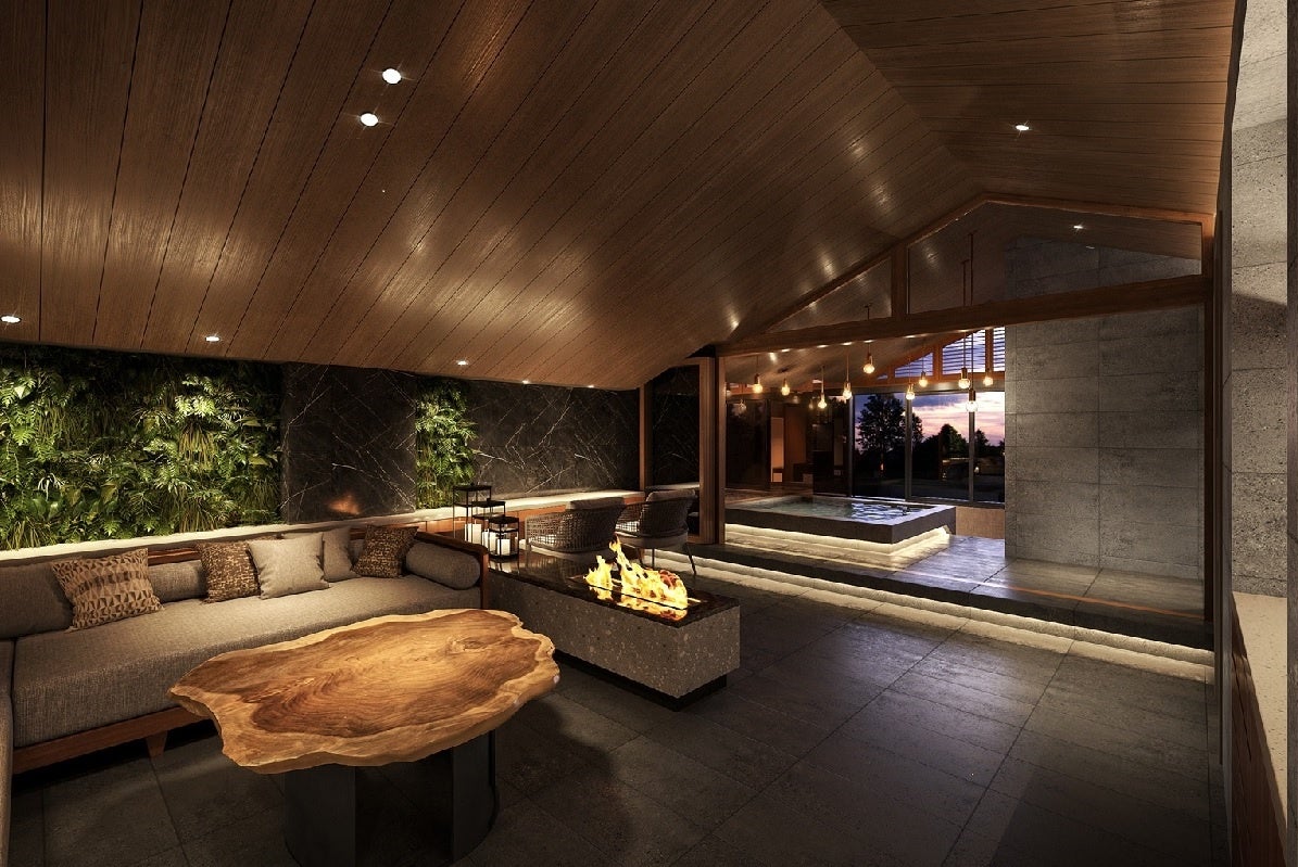 バレルサウナ、アウトドアソファ、ブランコベンチなど、屋外を思わせるしつらえとグリーンに囲まれた空間で、心身の調和を大切にする特別なひとときをお過ごしください。