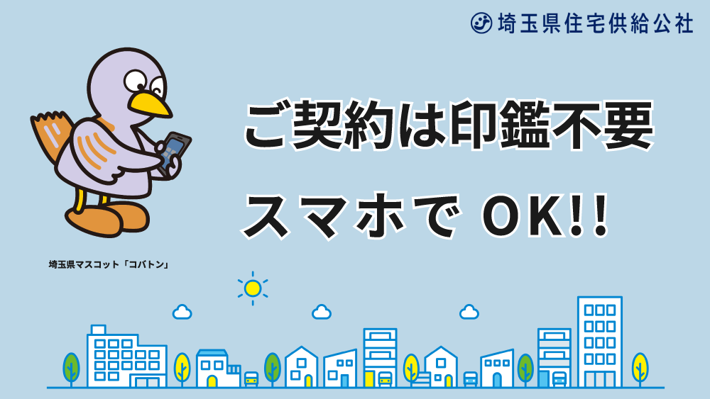 2023年8月より埼玉県住宅供給公社(埼玉県さいたま市)が所有する賃貸物件等の契約手続きは、印鑑不要でお手持ちのスマートフォンで行えるようになり、大変便利でスマートになりました。