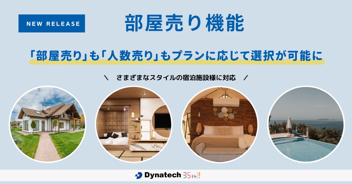 この「部屋売り」は、旅館やグランピング施設、リゾート施設をはじめとした、1室を大人数で利用できる施設の販売形式に適した価格設定であり、施設からのご要望も多く挙がっていた機能となります。またwithコロナ時代がはじまり、インバウンド需要が高まりをみせる中、海外で一般的な部屋売りを標準実装することで、Direct In S4ユーザーにおける自社予約の強化を支援いたします。