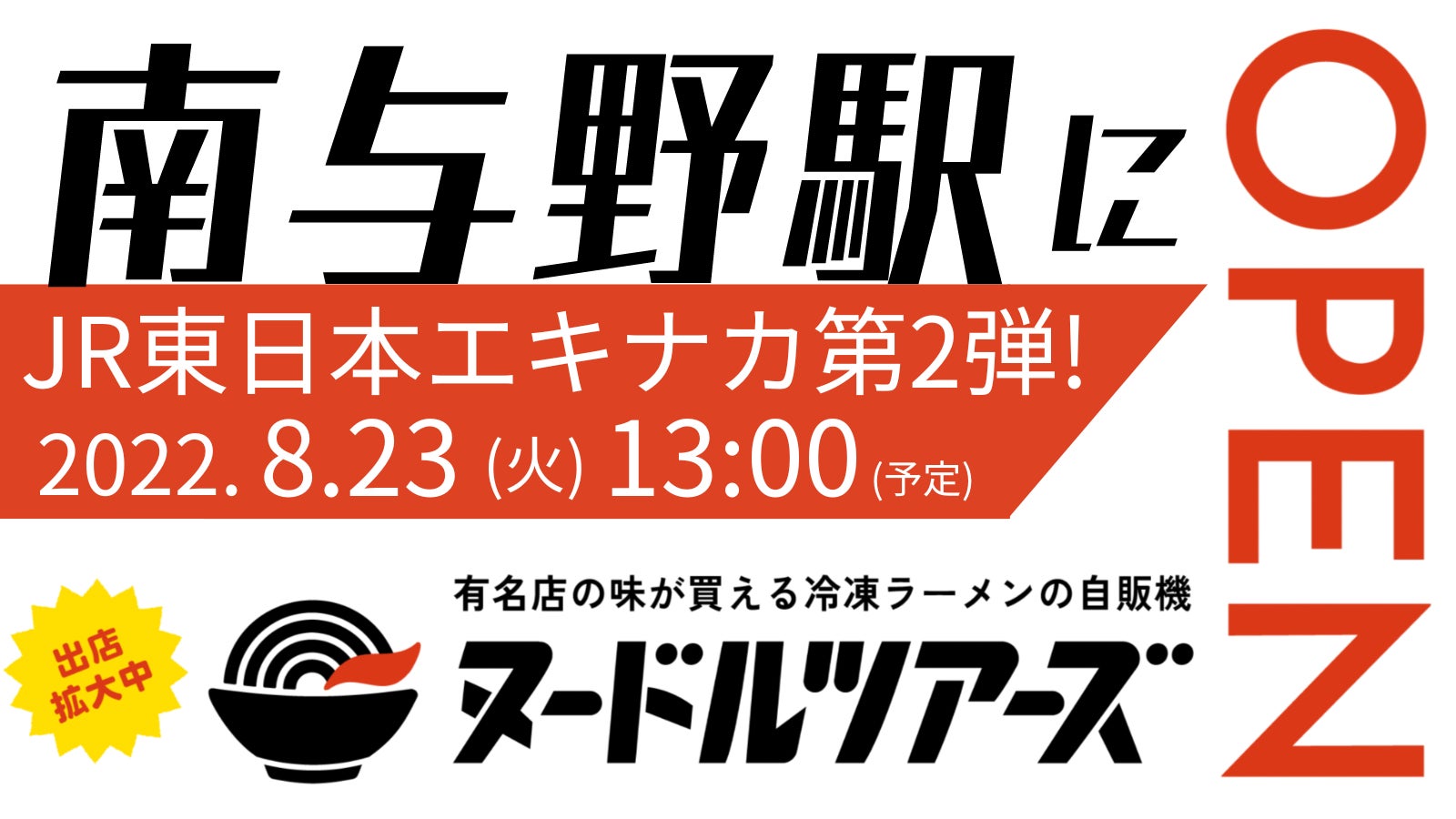 今年1月には、お持ち帰り需要の高まりに応じて、JR東日本エキナカ初となる大宮駅にて『ヌードルツアーズ』を設置※し、大好評をいただきました。今回は第2弾として南与野駅に設置いたします。今後、他の駅への設置も引き続き検討しておりますが、この機会にぜひ南与野駅にお越しいただき、有名店の味を堪能いただければと思います。