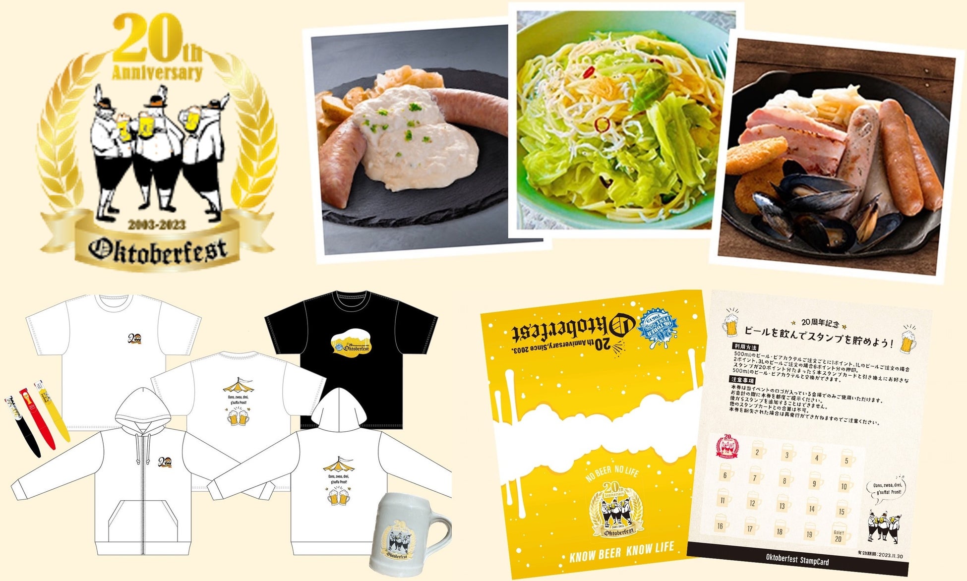 オクトーバーフェストの定番メニューをふんだんに盛り込んだ20周年限定プレートや限定のヤードグラスでのビール提供など様々な限定グルメが登場します。